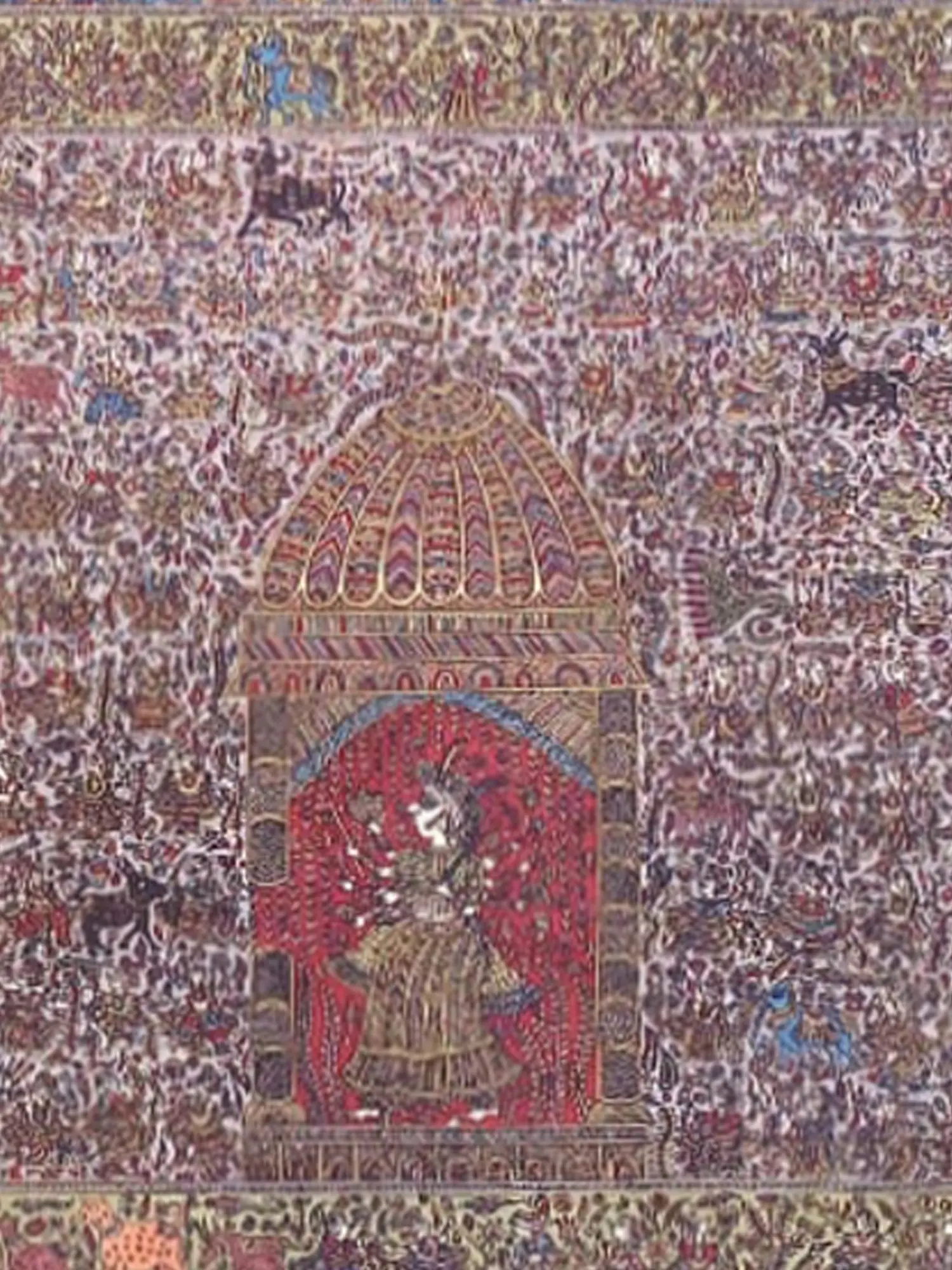 This arresting composition unfolds across an impressive expanse, measuring sixty-six inches in width and forty-two inches in height. The central figures, radiating divine energy, are framed by a vibrant tapestry of smaller figures and symbolic motifs. You’ll observe the masterful layering of imagery, drawing your eye through a complex and compelling scene. The rich palette of natural colors creates a harmonious and evocative visual experience, rich with texture and meaning.