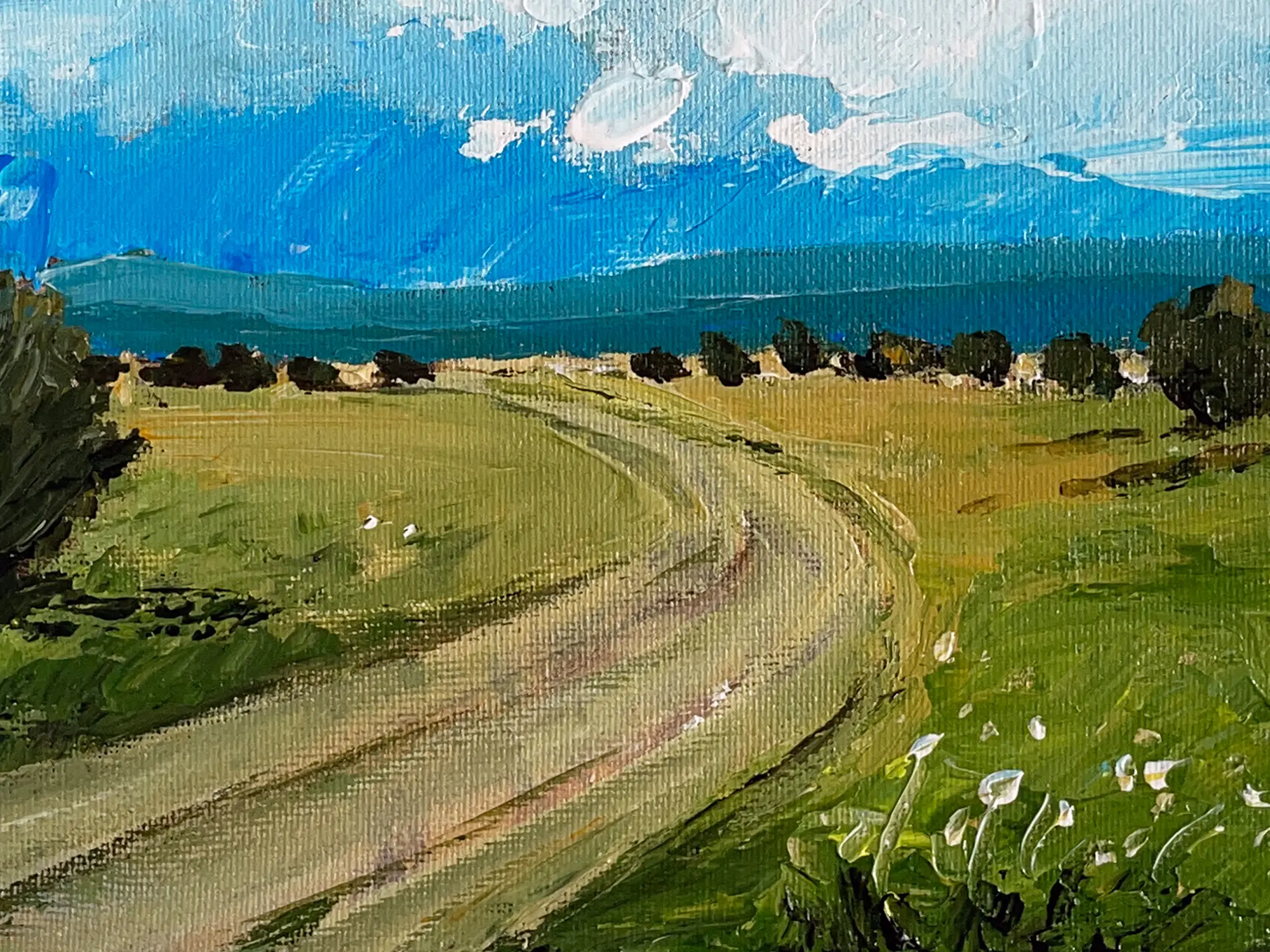 Let “The Path of Nature” transport you to a realm of boundless wonder and tranquillity. In this mesmerising acrylic masterpiece by the artist “Mitisha Vakil,” verdant grasslands dance beneath the azure sky, adorned with majestic trees that reach for the heavens. A tranquil path meanders through this idyllic landscape, inviting you to wander and lose yourself in its serene beauty. Inviting you to flee the clamor of contemporary life and reacquaint yourself with the core of nature, every stroke of the brush reveals secrets of peace and harmony.