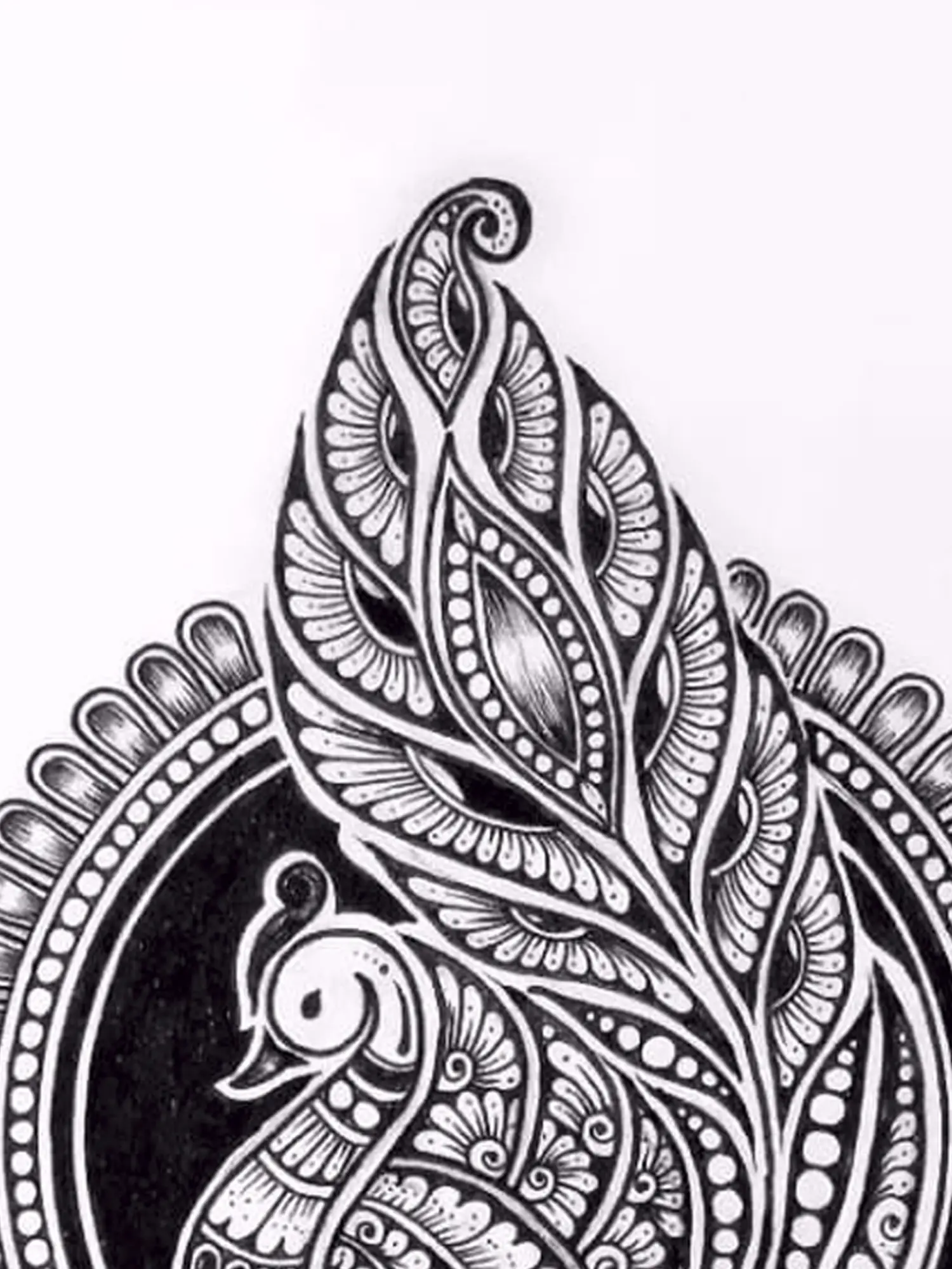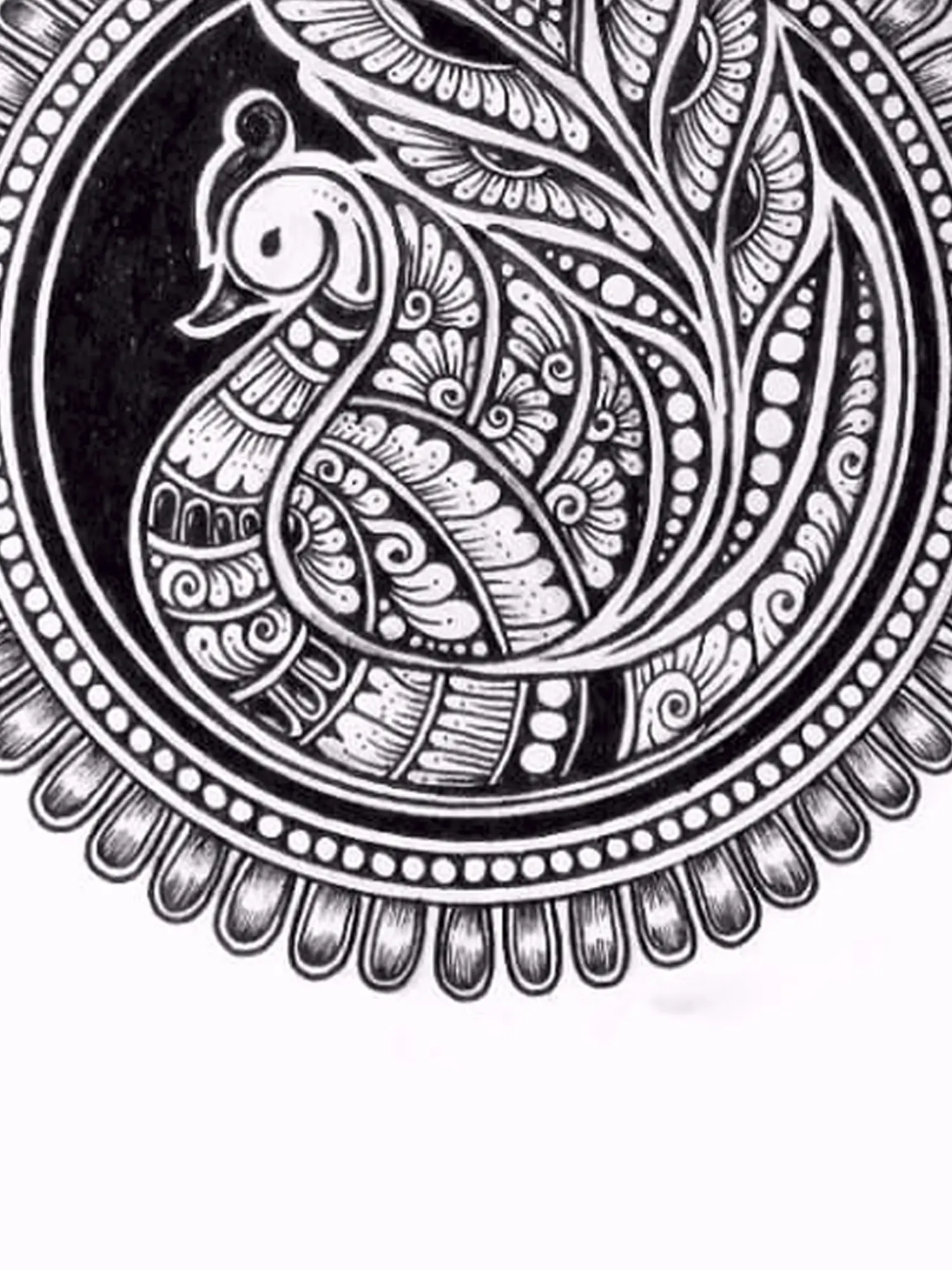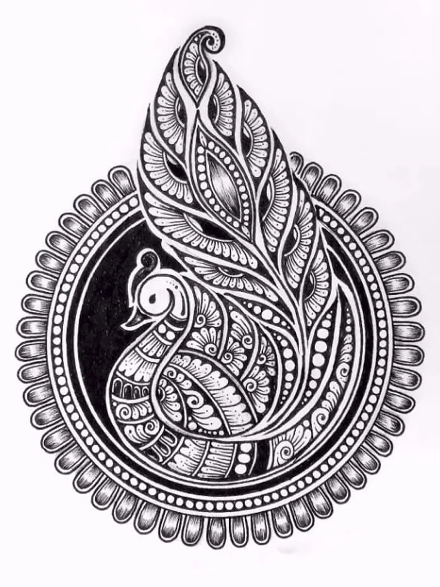 This beautiful piece of art by the talented artist Shivani Patra exudes a sense of mystique and grace thanks to its painstaking ink engravings. In the middle of elaborate mandala patterns stands the majestic peacock, whose brilliant plumage represents spirituality, beauty, and opulence. A tale of exquisite workmanship and deep symbolism unfolds with every stroke, beckoning you to explore the depths of your consciousness. Place this hypnotic piece of art in your home, workplace, or meditation nook to create a positive vibe.