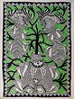 Auspicious Madhubani of Tree of Life with Peacocks and Fishes
