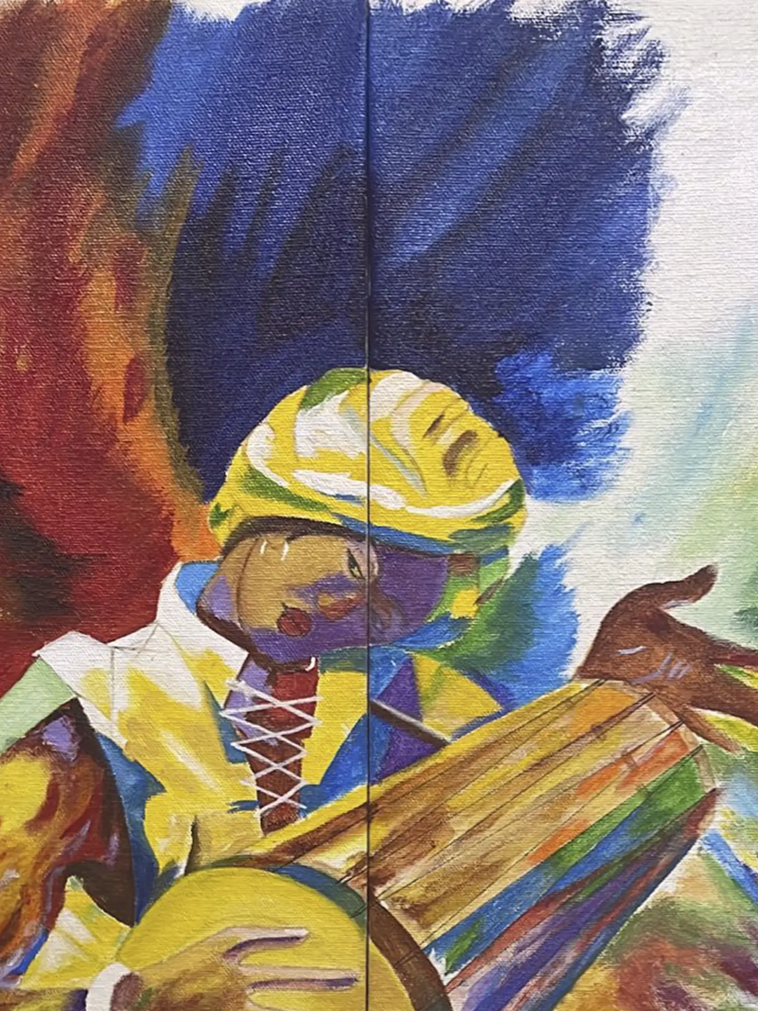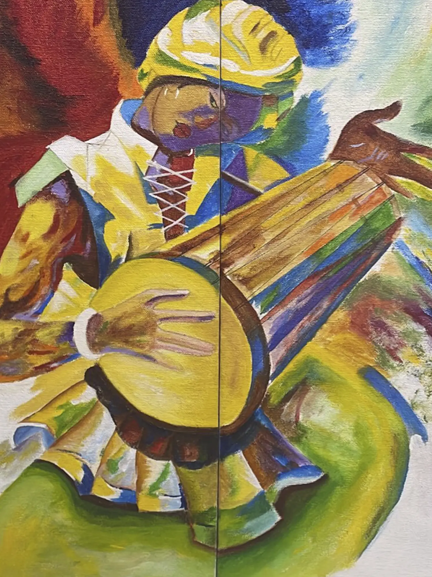 Every stroke captures the dynamism of the moment, from the rhythmic beats resonating in the air to the intricate details of the traditional attire. This painting when placed on a wall will enrich the decor with the positivity that comes with music.