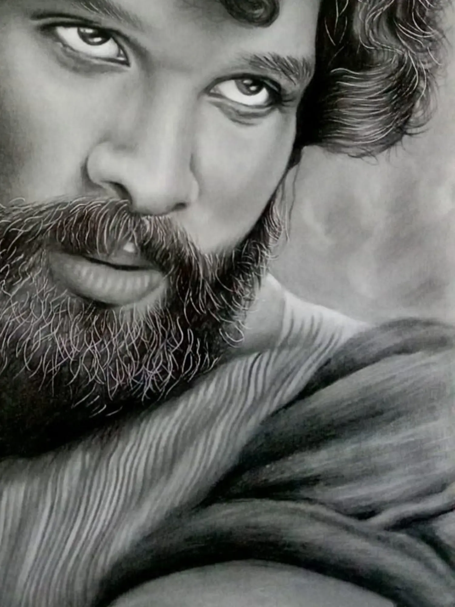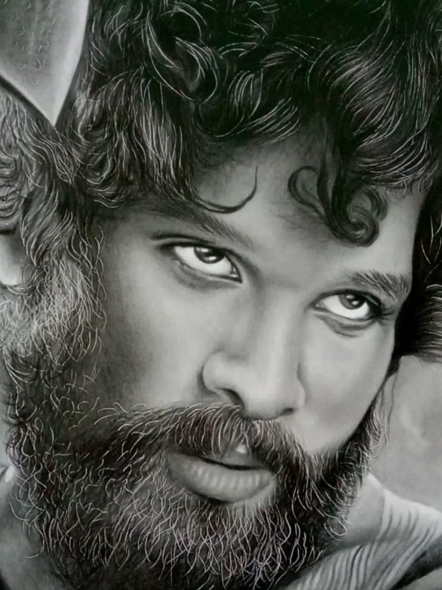 With dynamic precision, the graphite portrait of Allu Arjun as Pushpa captures the essence of the character's enigmatic charm and rugged allure. Each line evokes the raw intensity and untamed spirit of the forest dweller, resonating with the pulse of the untamed wilderness - where every glance carries the promise of adventure and danger. Through Pushpa's intense gaze, observers embark on a sensory journey, exploring the depths of human complexity and the allure of the unknown.