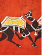 This "Procession of Camels" Batik Painting is a captivating portrayal of cultural richness. Crafted with meticulous detail, the batik technique brings to life a vibrant procession of camels against a backdrop of desert hues. The wax-resist dyeing method creates a unique texture, enhancing the visual appeal of the camels and the surrounding landscape.