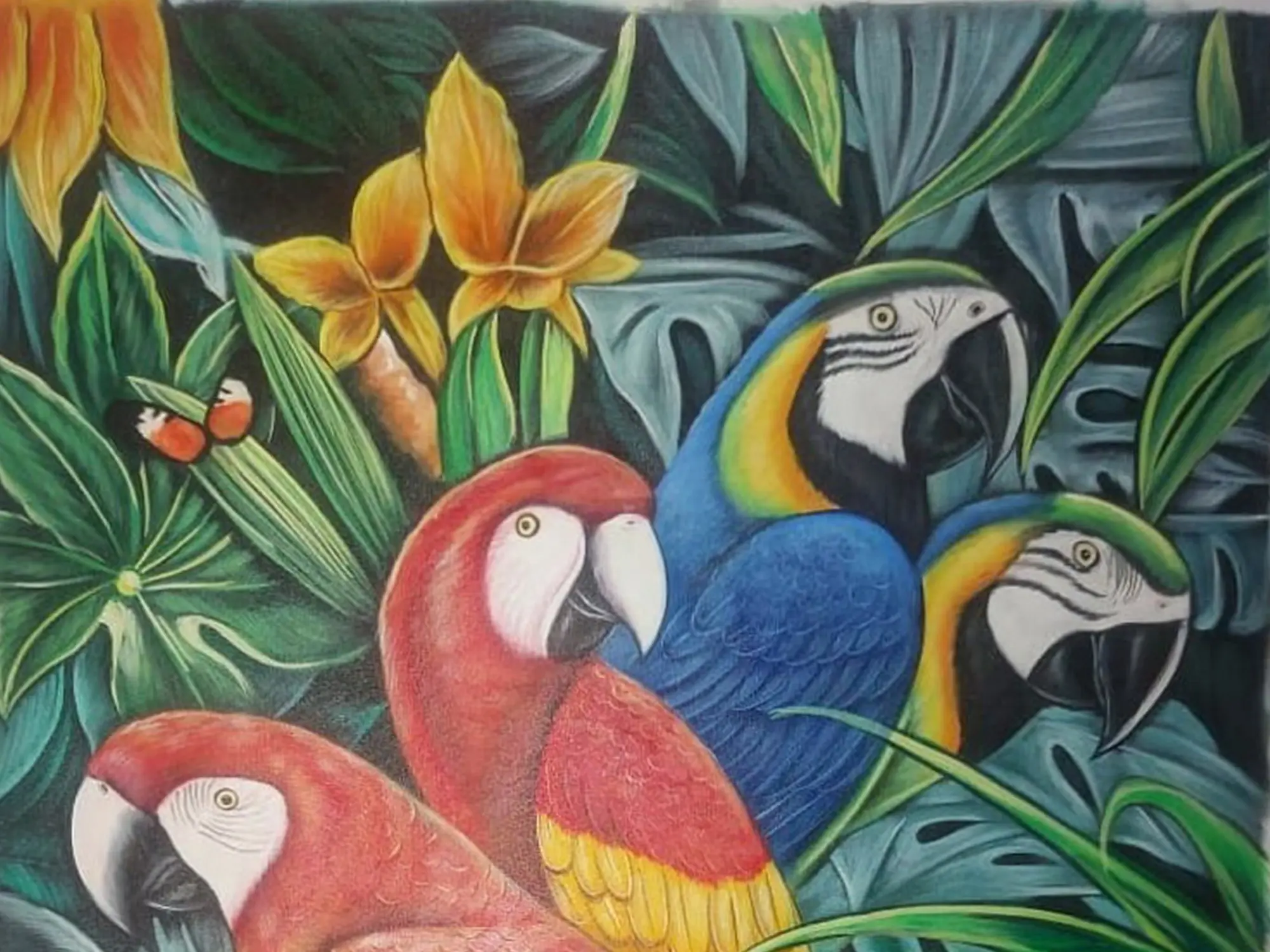Bhardwaj's work not only showcases her artistic mastery but also conveys a deep appreciation for the natural beauty and diversity within the avian realm. Through her brushstrokes, she invites viewers to connect with the colorful and fascinating world of Psittaciformes.