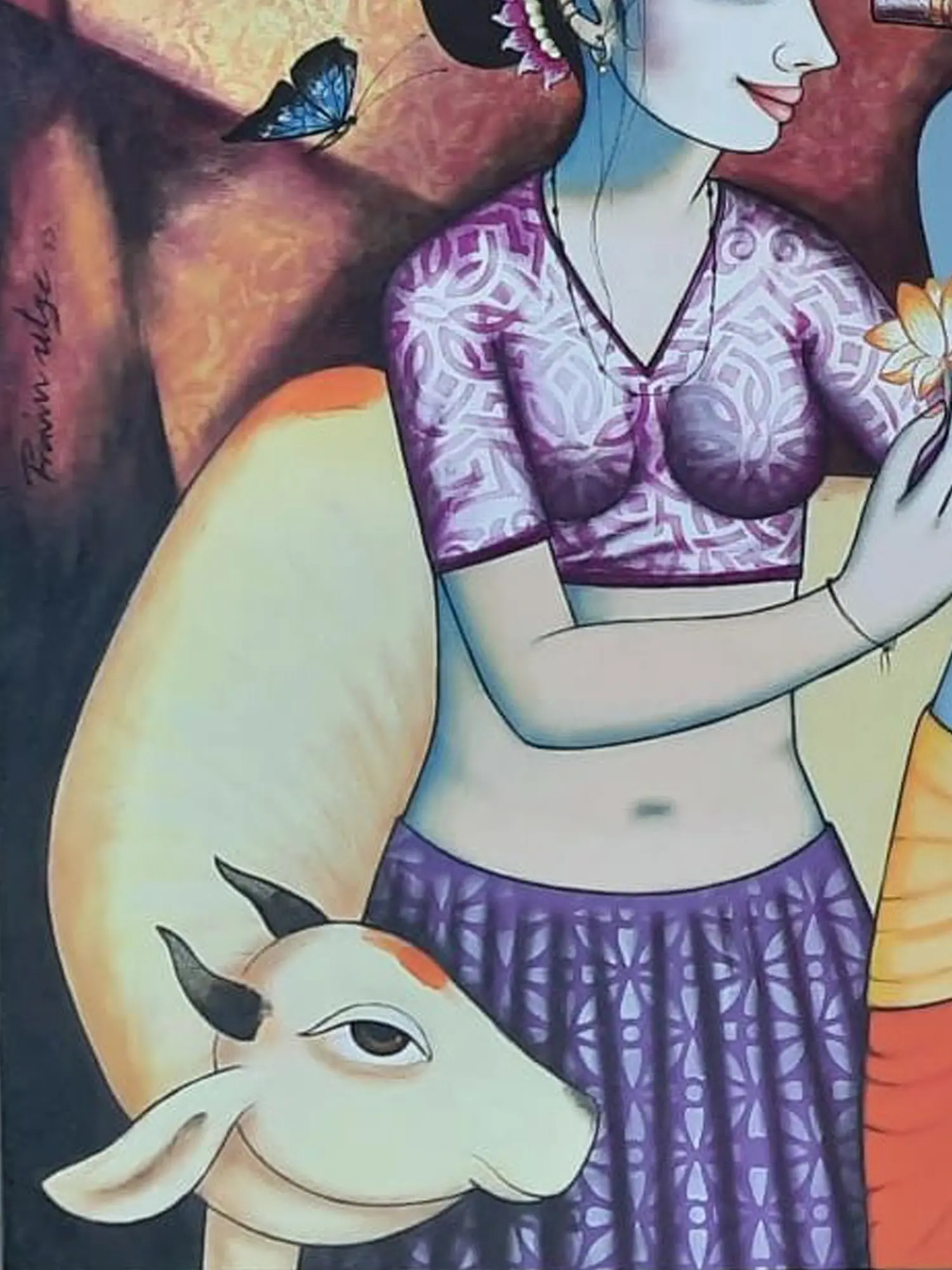 Standing Radha And Krishna With Flute | Acrylic On Canvas | By Pravin Utge