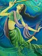 Rich blue and green tones create an ethereal and serene atmosphere.
