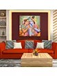 Both of them are adorned with many ornaments and regal garments that enhance the exquisiteness of this image. Embodying and radiating eternal bliss of inseparability, this Radha-Krishna painting becomes the source of these virtues in your space.