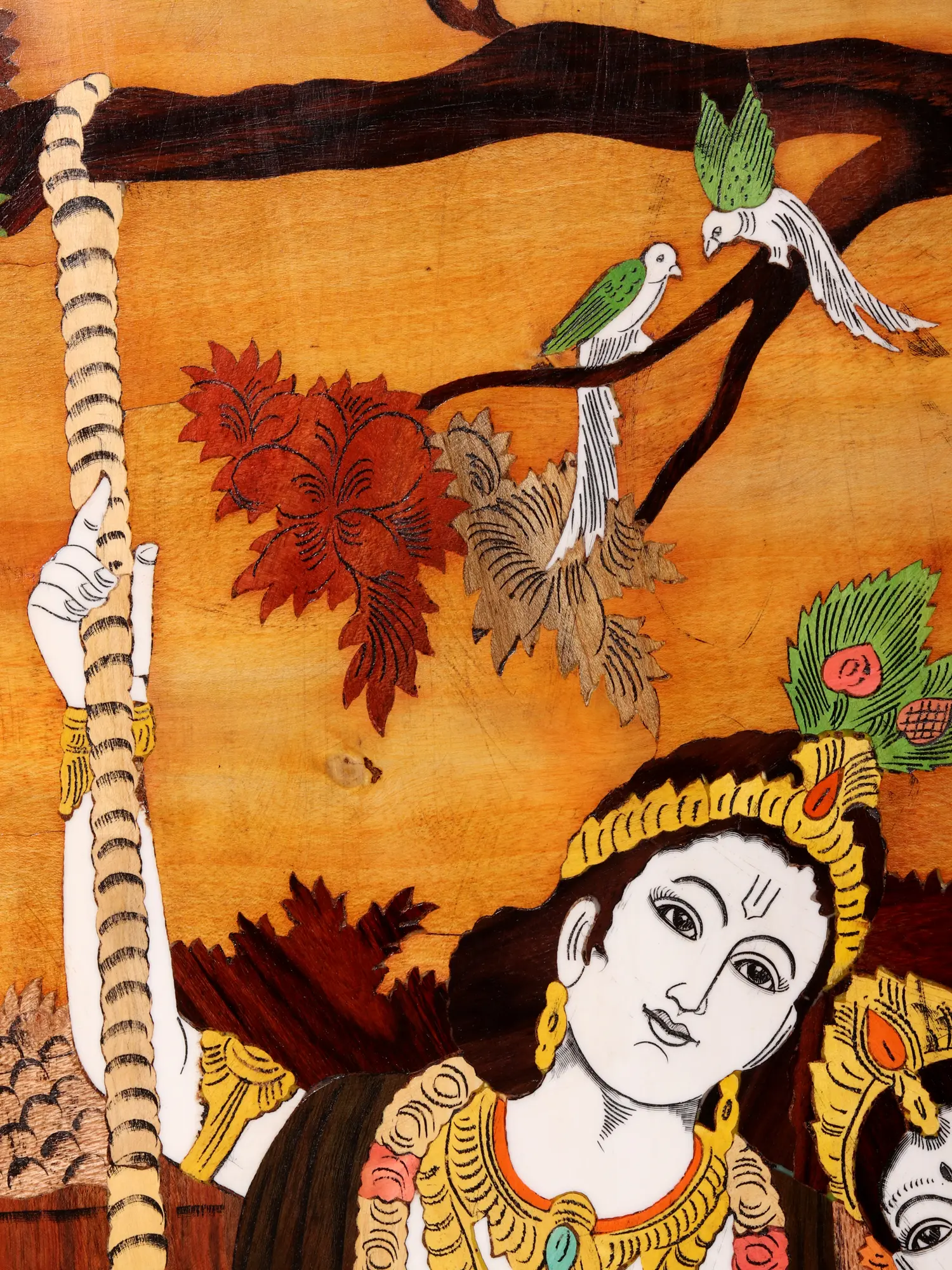 Radha Krishna on Swing | Wood Panel with Inlay Work