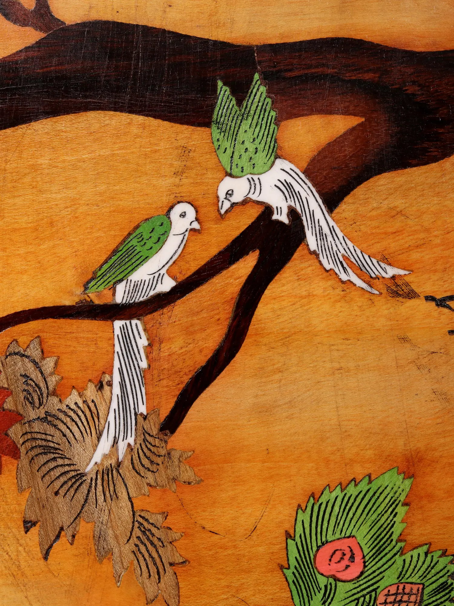 Wood inlay is a historically significant art form from the 18th century. It arrived in India through Srirangaptnam in Mysore from Persia but has become an inevitable part of the Indian heritage. Tipu Sultan and the Wodeyars/Wadiyars are credited with the growth of this 400-year-old art form in Mysore and its neighboring areas. Wood inlay work is usually done on a Mysore rosewood base, and other woods are used, like mango, kadam, jackfruit, rubber, doodhi, etc. Pieces of wood are adorned with beautiful motifs and patterns made from various materials. From wall hangings and paintings to jewelry boxes and furniture, many items are made using the Mysore wood inlay technique. An outline is etched on a piece of rosewood with a sharp tool. Then, the area inside the outline is hollowed out, and materials like lacquer, enamel, contrasting wood, and sometimes even gold and silver are placed inside it. A sandpaper is used to give a smooth finish to the surface.