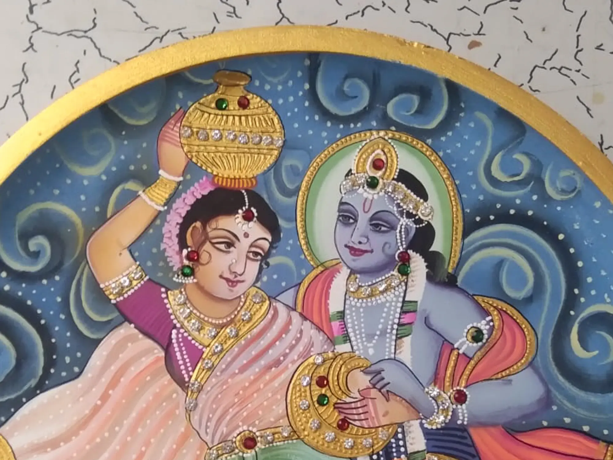 Lord Krishna And Radha | Acrylic On Canvas | Traditional Kerala Mural Art