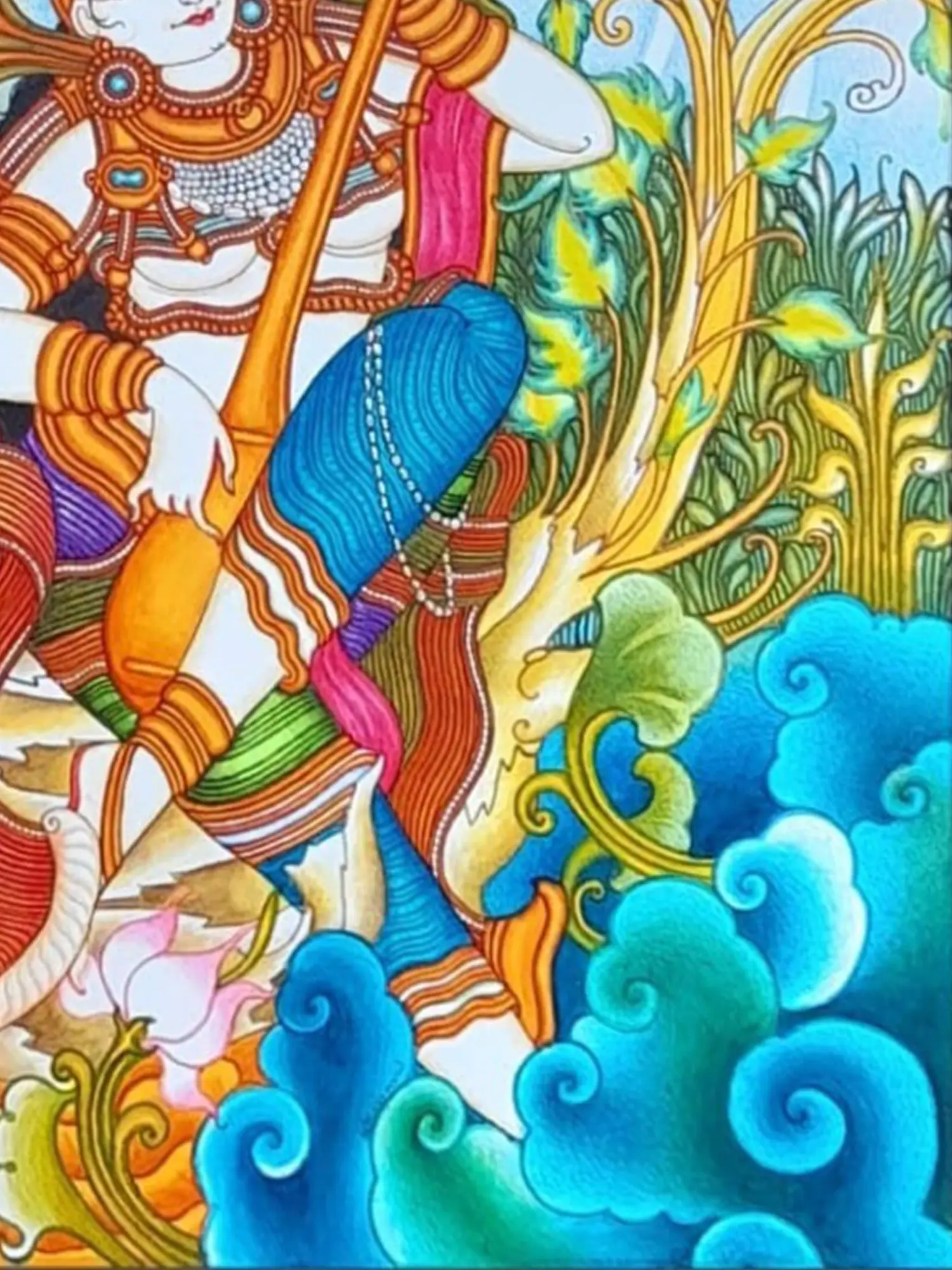 Crafted with meticulous attention to detail, this piece is rendered in vibrant acrylics on canvas, a modern interpretation of the ancient Kerala mural tradition. Each stroke is a testament to the enduring artistry, preserving the rich heritage of this revered South Indian art form. You will appreciate the depth and texture achieved through the skilled application of color, mirroring the techniques passed down through generations of artisans.