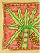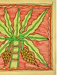 In this vibrant Madhubani art piece, the portrayal of a Banana tree is not just a visual delight but a exploration of its role in Hindu rituals. Against an orange backdrop, the light green leaves and yellow bananas symbolize vitality and auspiciousness. This sacred depiction becomes a divine addition to any wall, as it is believed that Lord Vishnu resides within the Banana tree.