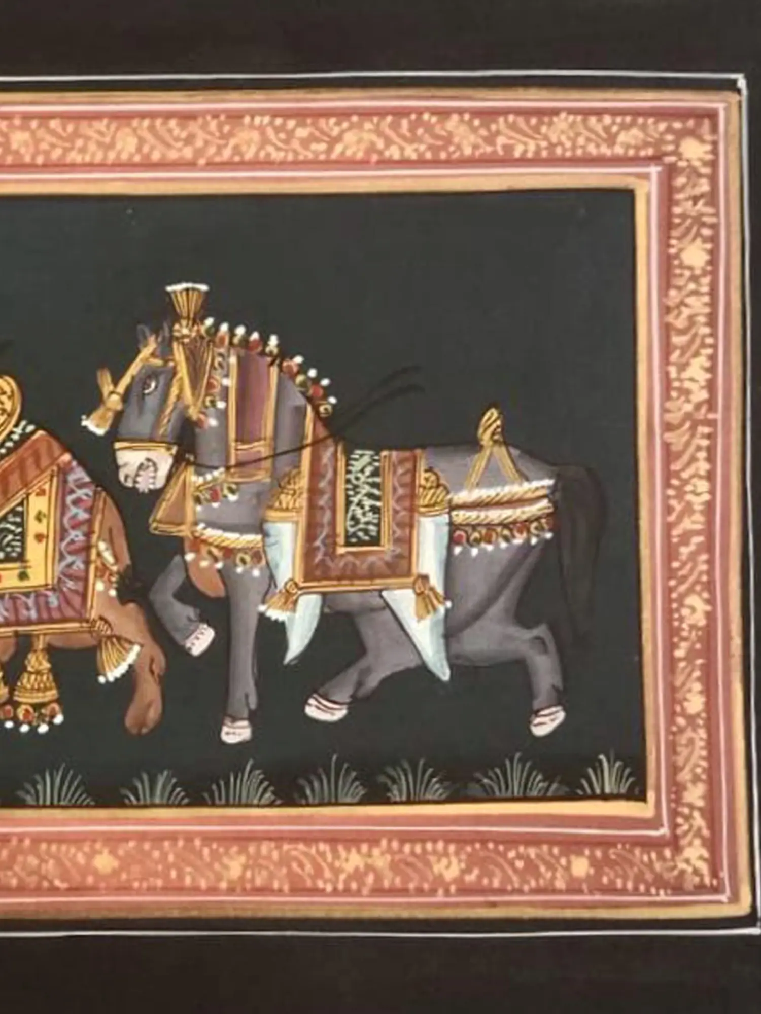 Embark on a regal safari through the sands of Rajasthan with "Rajasthani Royal Animals," a majestic painting that pays homage to the vibrant fauna of the desert kingdom. From majestic elephants to graceful camels, each creature is adorned in the finery of royalty, their regal presence commanding attention and admiration. The artist's masterful brushwork and rich colour palette bring the arid landscapes of Rajasthan to life, capturing the essence of its exotic charm.
