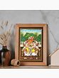 Ornated in red and green kundan choker along with matching bracelets and anklets and a long flower garland, painter has beautifully portrayed the royalty and grace of king Ganesha. Painted in a soothing spring background with varied plantations, this water color painting gives an essence of happiness and calmness.