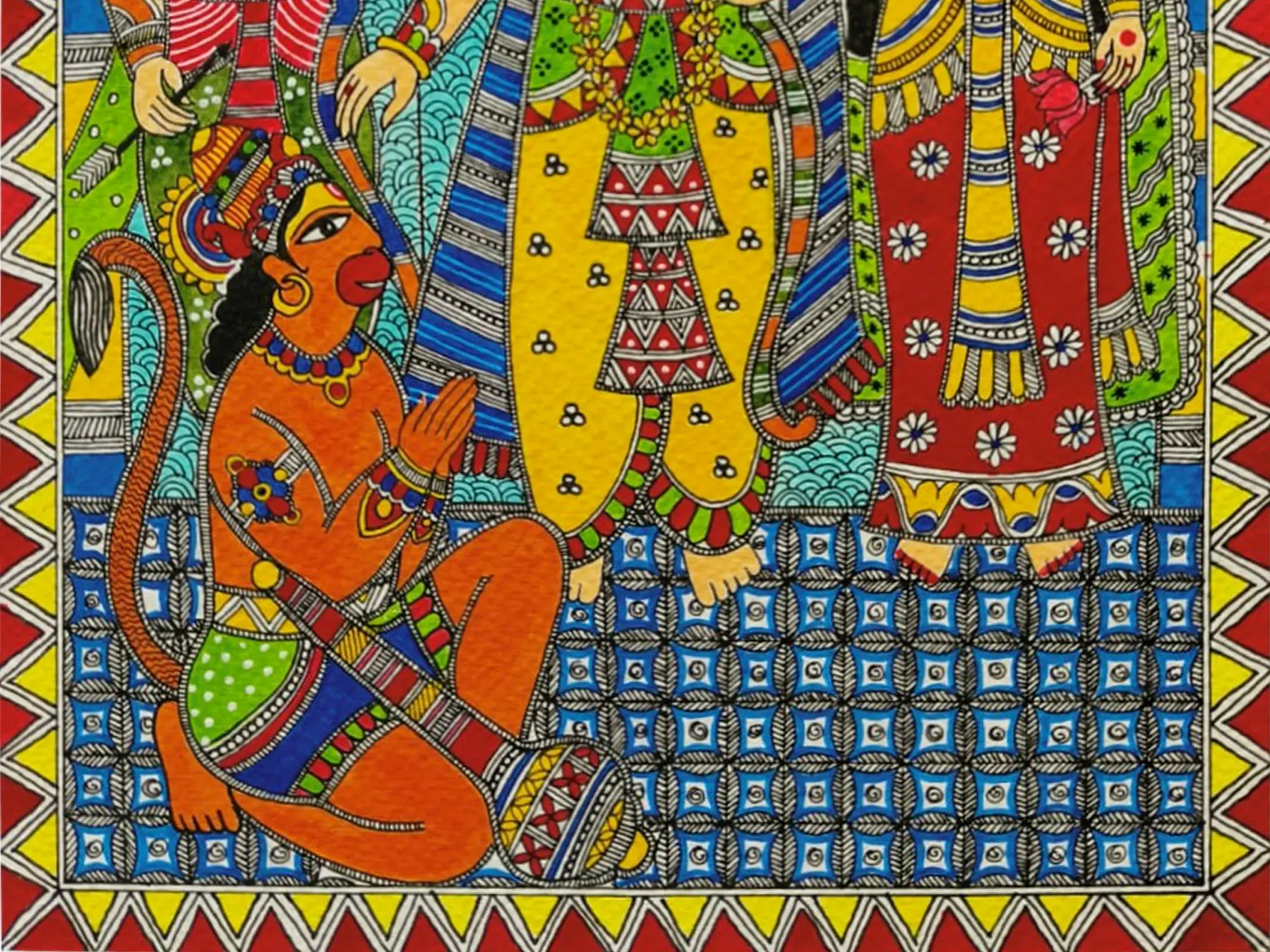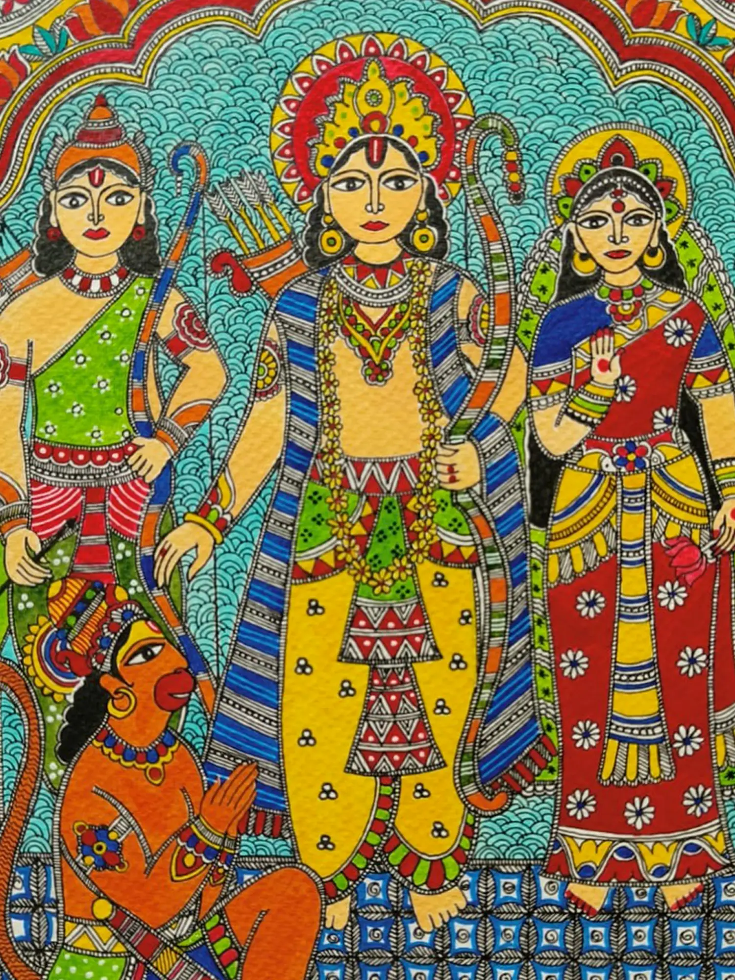 Ram Darbar - The Story Of Ramayana | Natural Stone Color On Handmade Canvas | By Sachikant