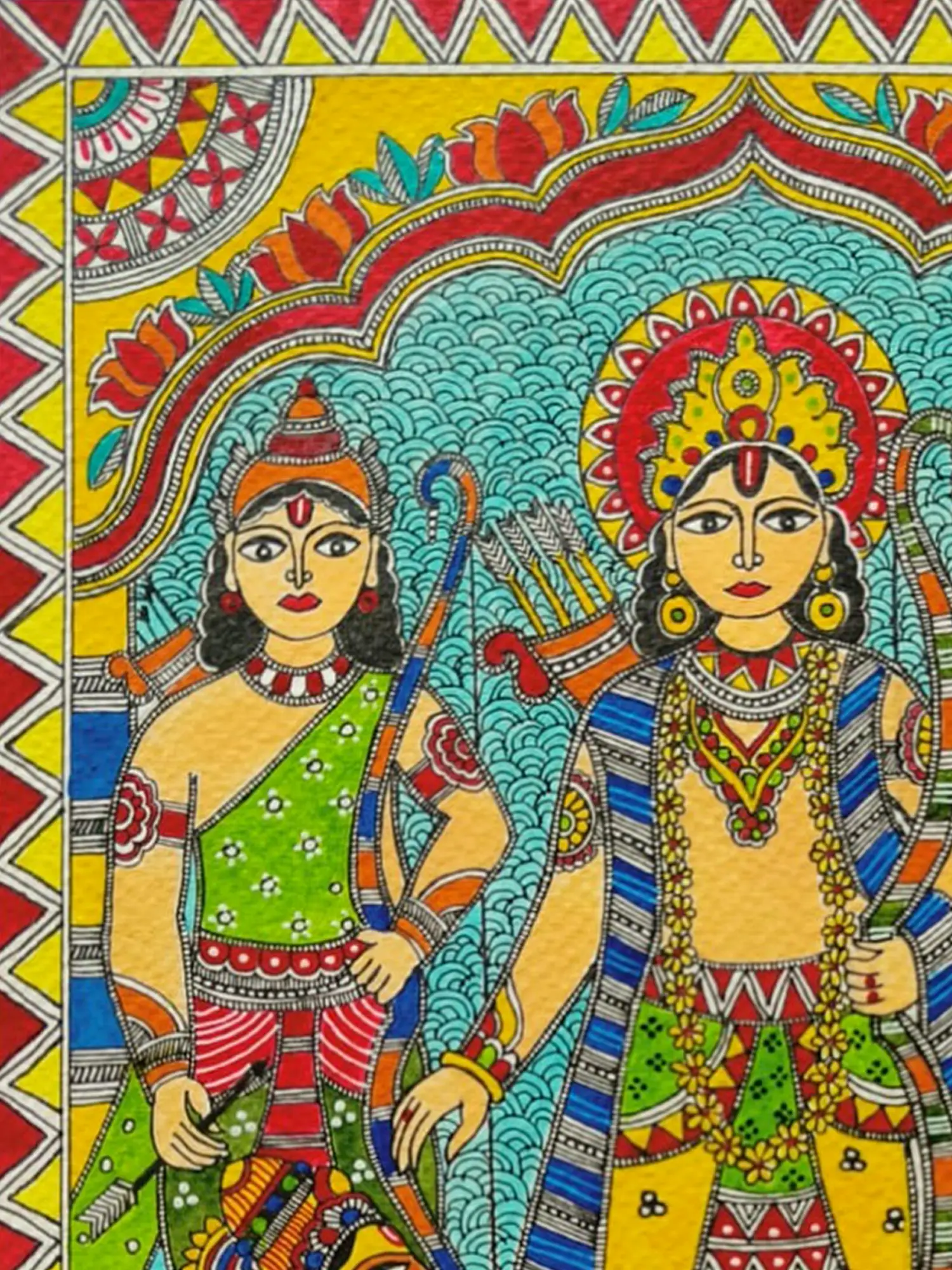 Ram And Sita In Blessing Gesture | Acrylic On Canvas | By Damini Sargam