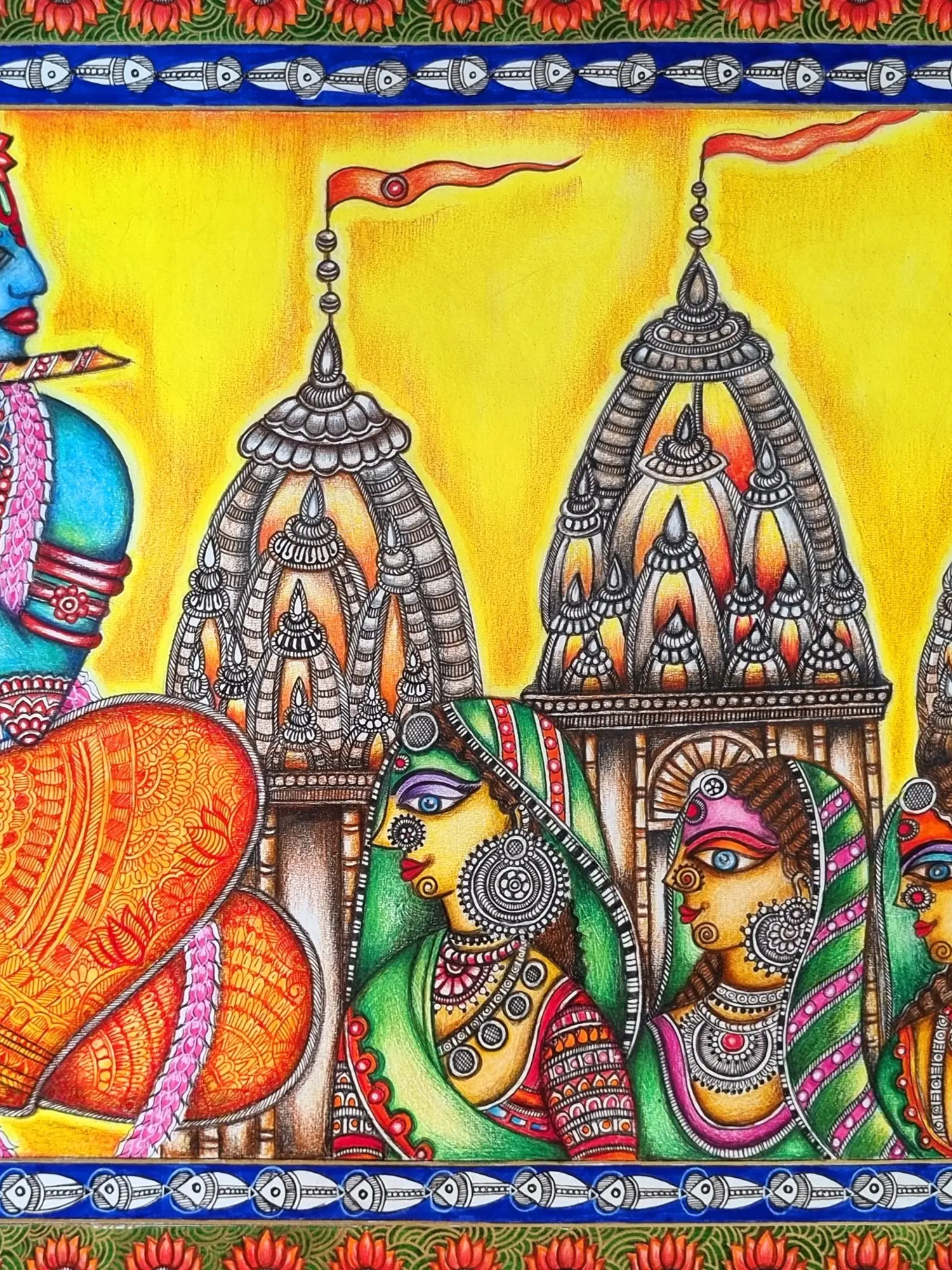 Devotion Of Lord Krishna | Acrylic On Canvas | By Arjun Das