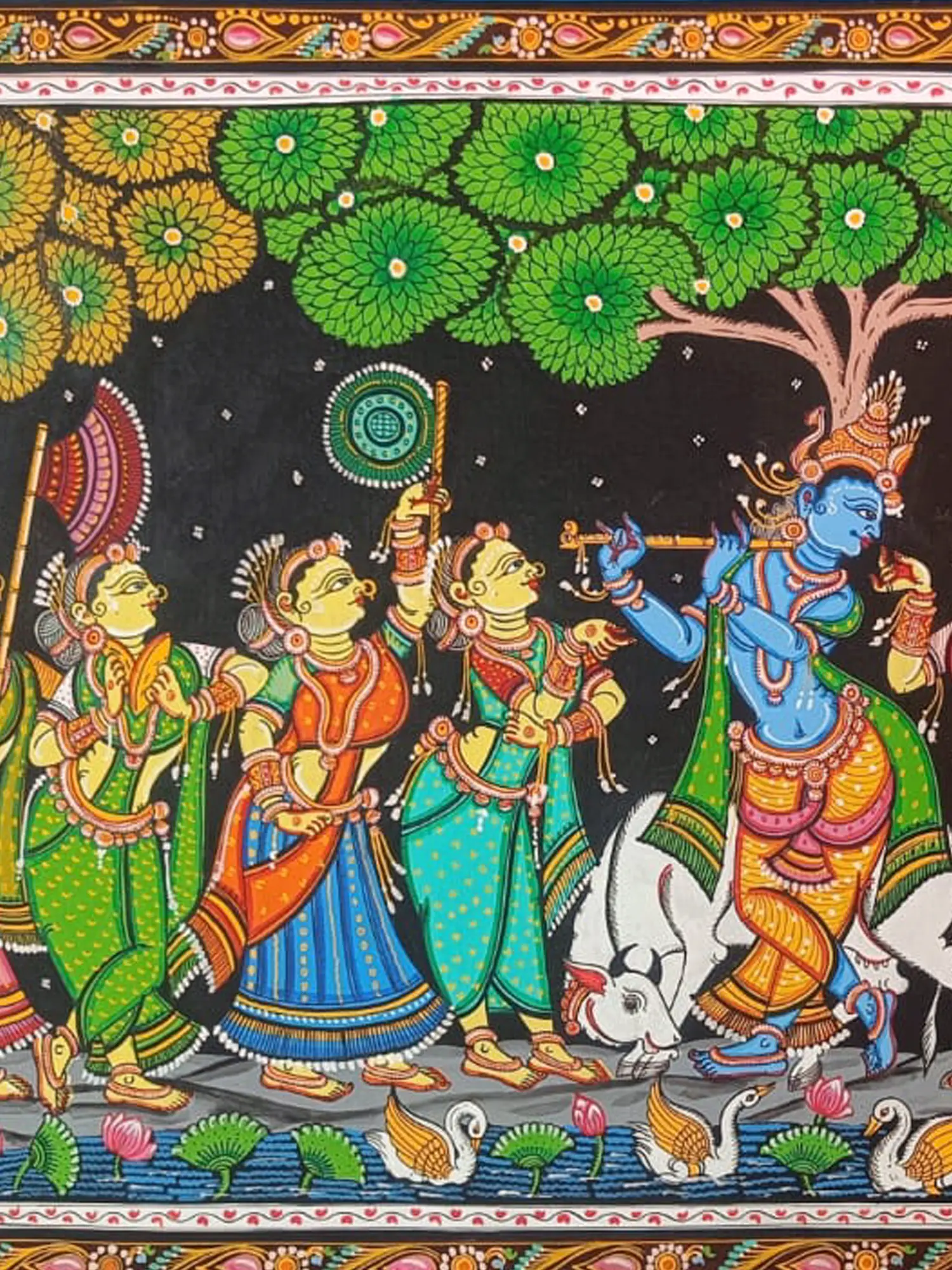 Rasleela - Dance with Gopis | Natural Colors on Canvas | By Sachikant