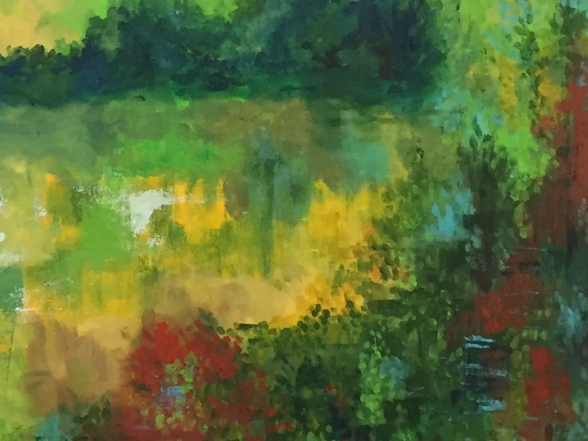 "Rediscovery" invites you on a journey of introspection and renewal through a lush vista depicted in acrylic on canvas. Amidst vibrant strokes of greenery, this artwork encapsulates the essence of nature's rejuvenating embrace. As sunlight filters through verdant foliage, a sense of serenity pervades the scene, offering solace and inspiration to weary souls. This piece of art beckons you to pause, breathe, and immerse yourself in the restorative power of greenery, reminding us of the wisdom found in the embrace of nature.