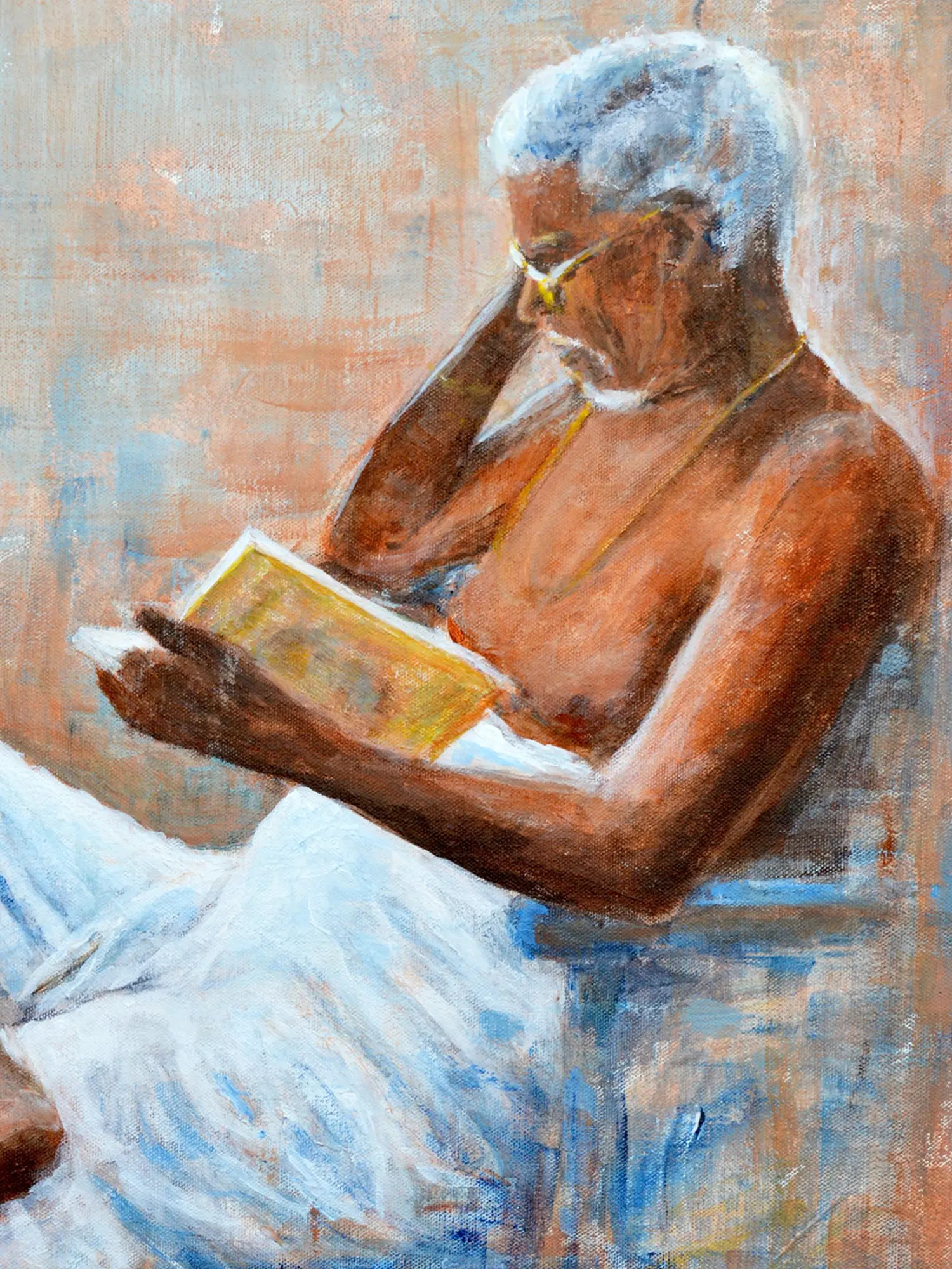 Embark on a journey of introspection and wisdom with "Retirement Solution," a poignant painting that captures the essence of contemplation. Against a backdrop of muted hues and gentle shadows, an old gentleman sits immersed in the pages of a book, his furrowed brow betraying a lifetime of experiences and insights. Through the artist's skillful brushwork, viewers are invited to reflect upon the timeless pursuit of knowledge and the quiet joys of solitude.