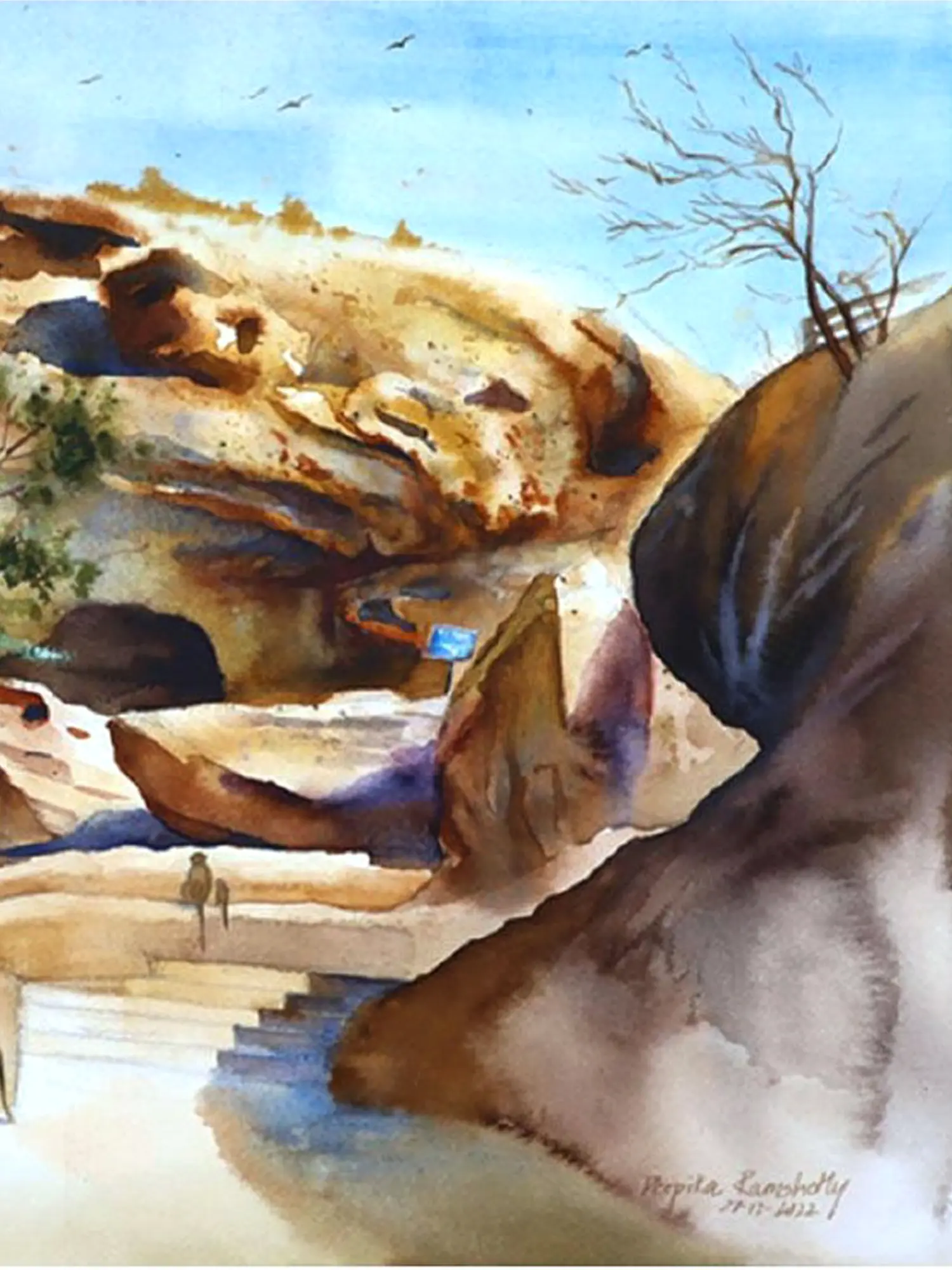 A Bird In Bundi | Watercolor | By Deepika Ramshetty
