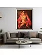The aura on her face surpasses the glow of the full moon, whose impact is enhanced by the firmness of her stance. Against an earthy backdrop, the figure of the queen stands out, carrying a splendor that will exalt your space.