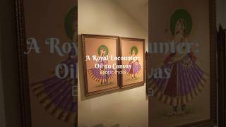 This painting beautifully divides itself into two halves depicting the royal pair standing on either sides of the curtain with a rose in their hands. The king and the queen are too busy in their everyday chores, so they don’t get enough time to express their love for each other, so here they finally come out of their royal room when the sun is about to set, with a rose in their hand and garbed in their luxurious attires, separated by just a minute wall of shyness, they are keen to present their gifts of love to each other.