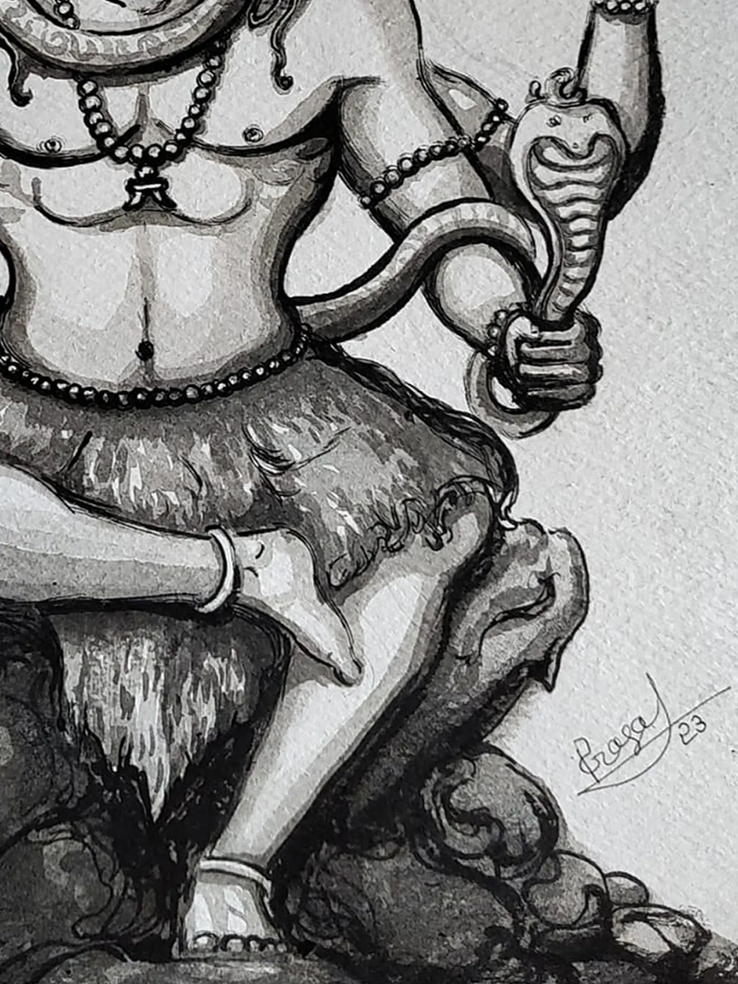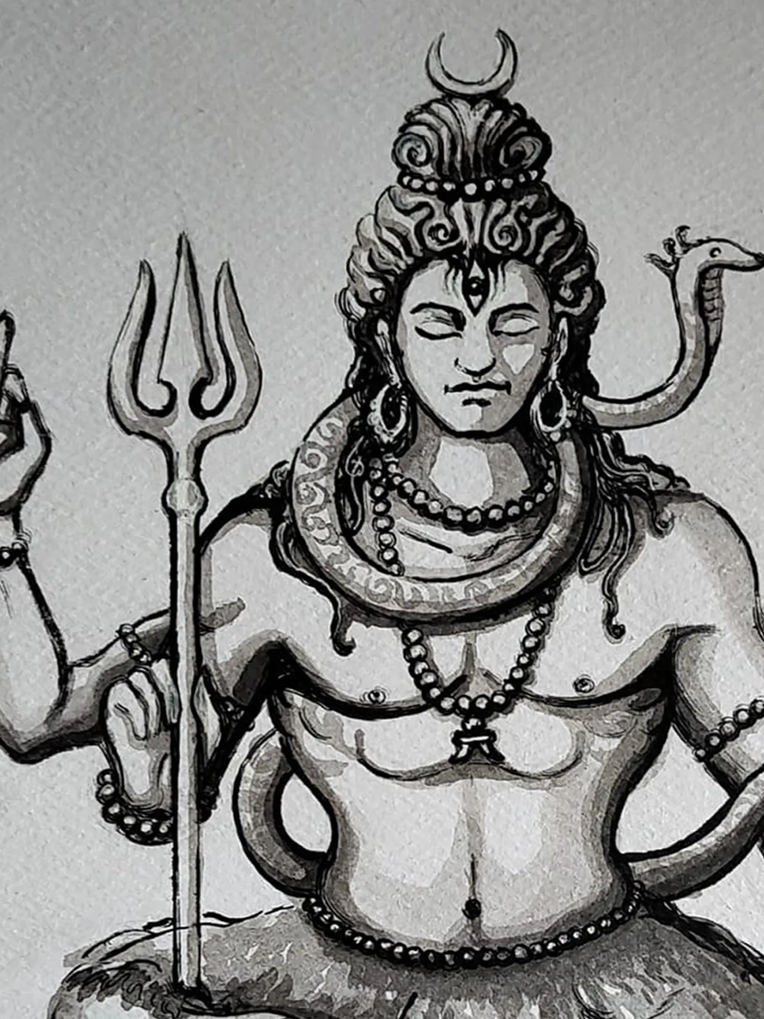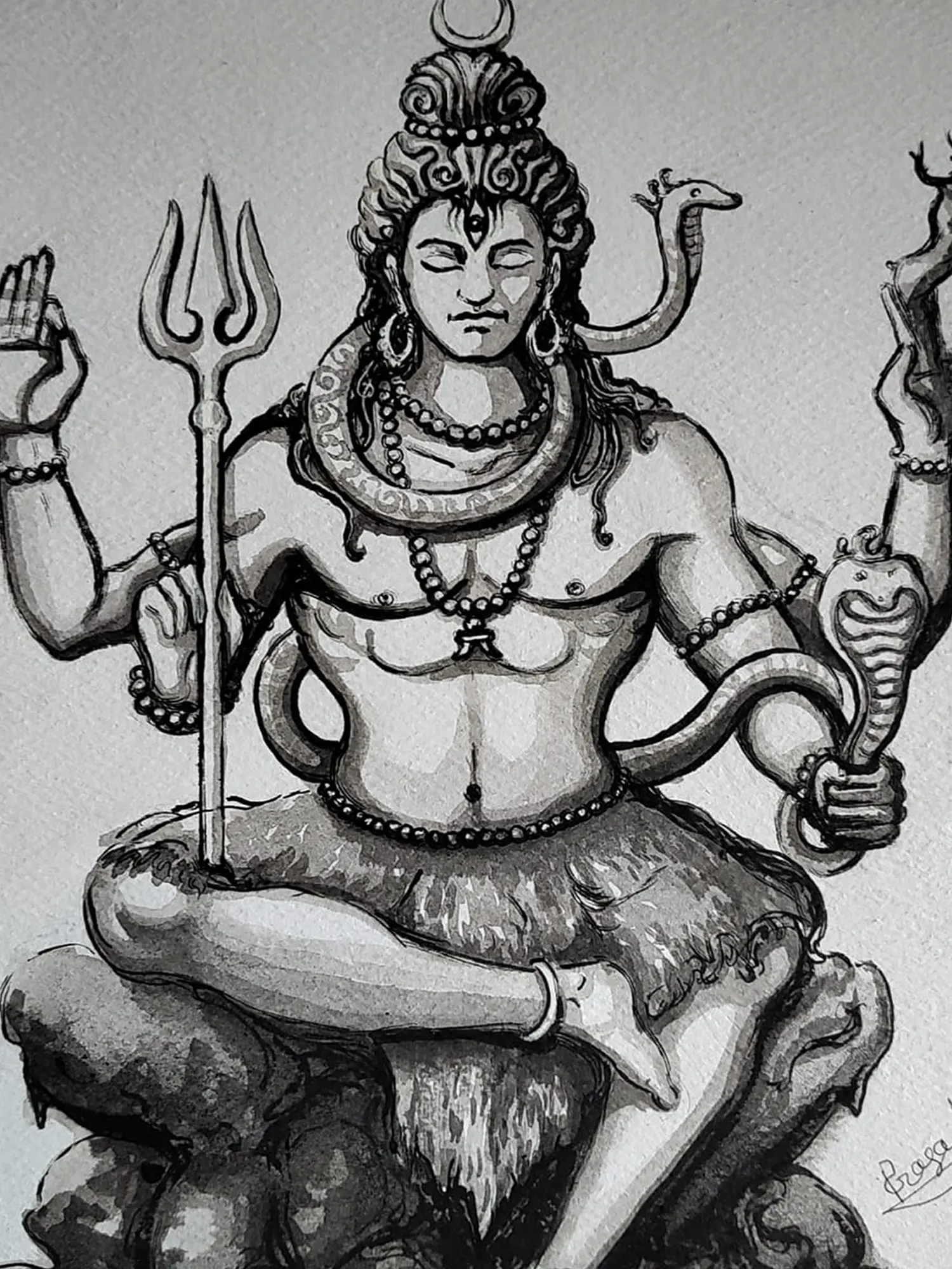 Shiva As An Archer Seated Astride On Nandi Painting | Water Color On Paper | By Sanjay Kumar Soni