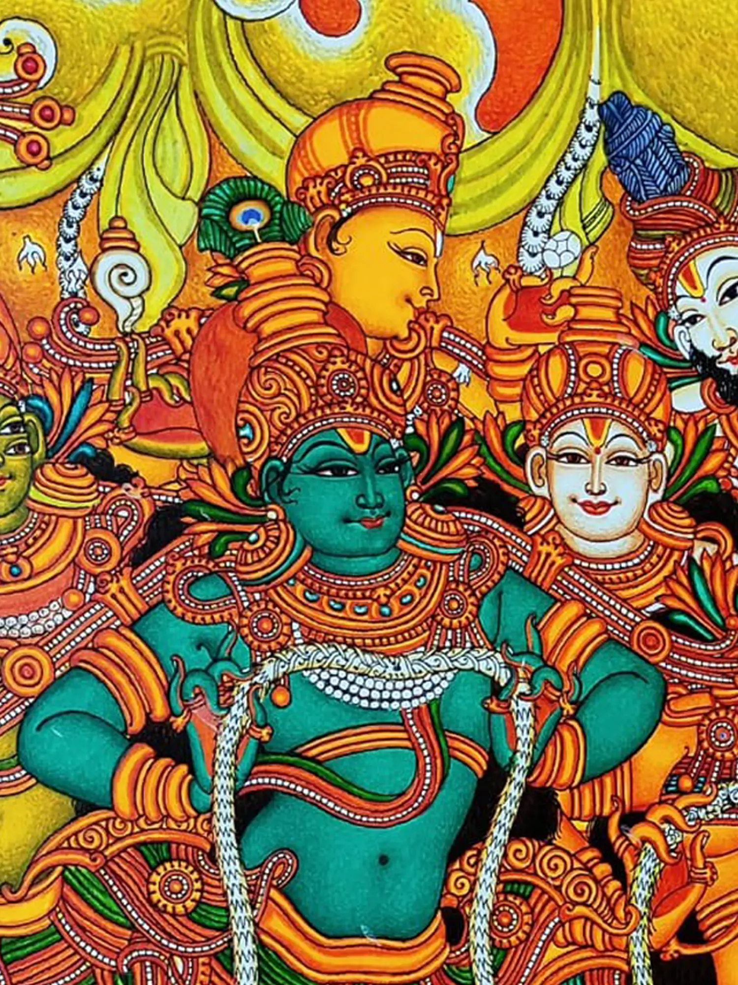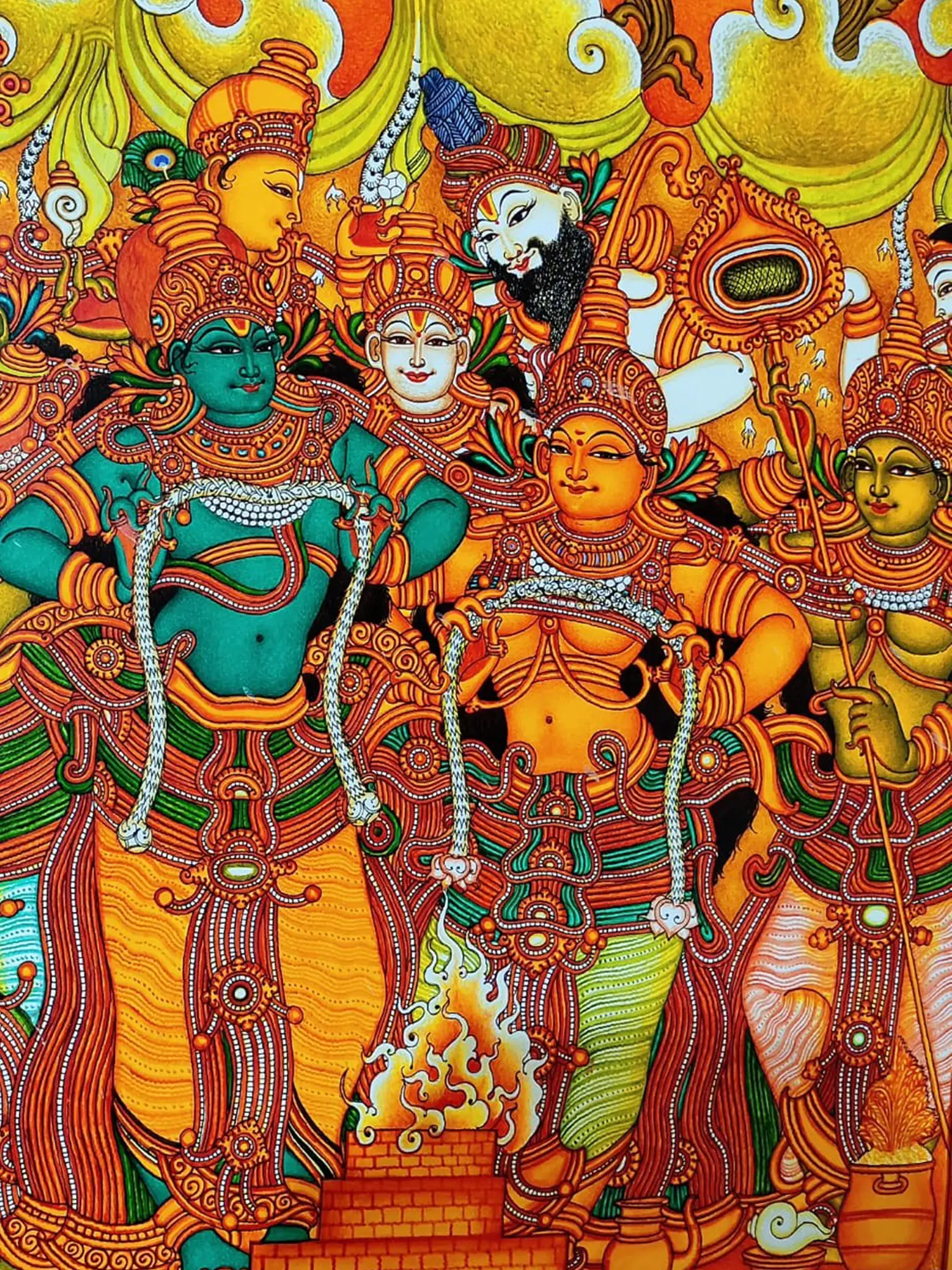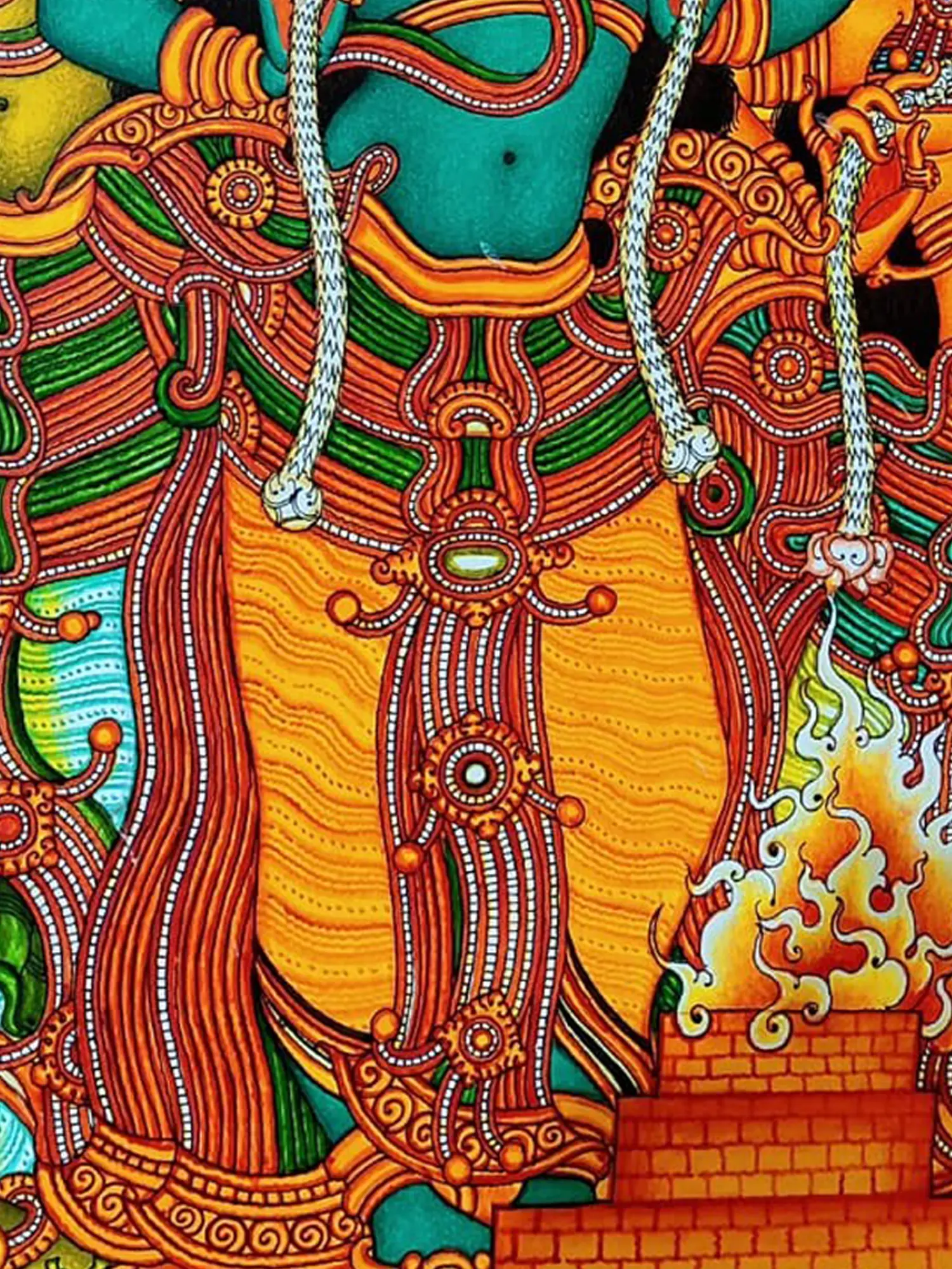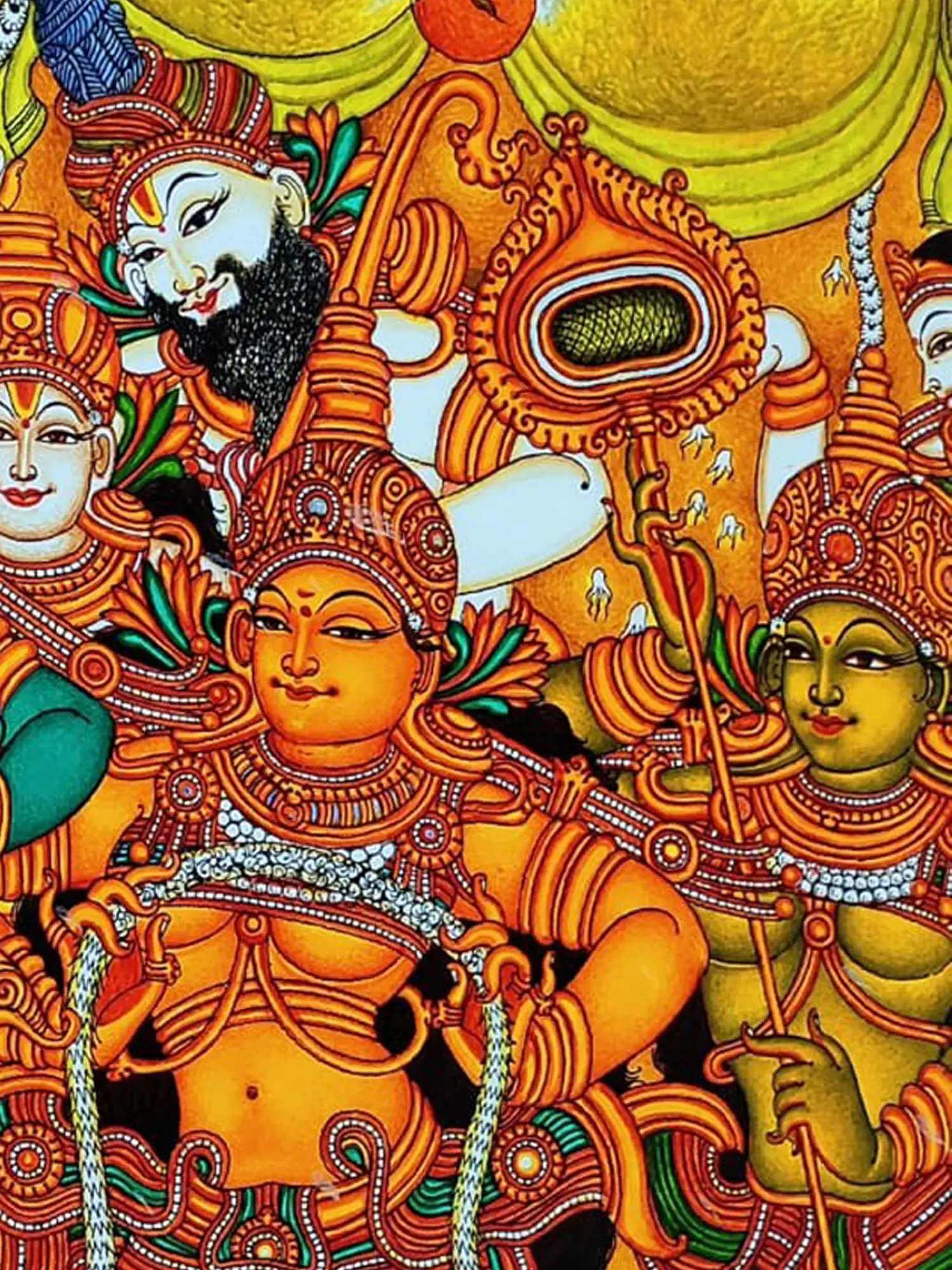 Seated Goddess Saraswati Holding Veena | Tanjore Painting | Traditional Colors with Gold Work