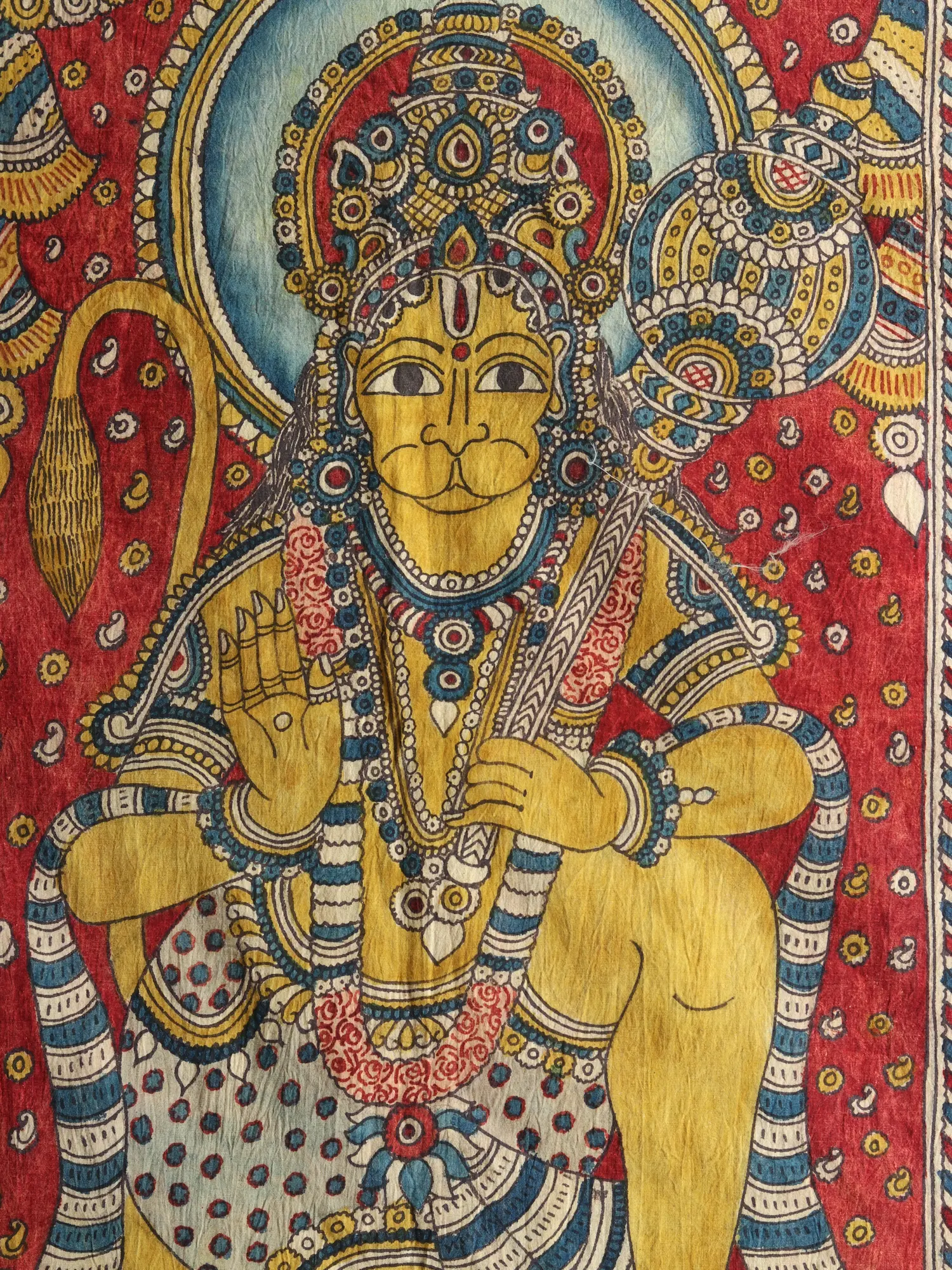 Sankat Mochan Hanuman Seated in Blessing Gesture | Kalamkari Painting