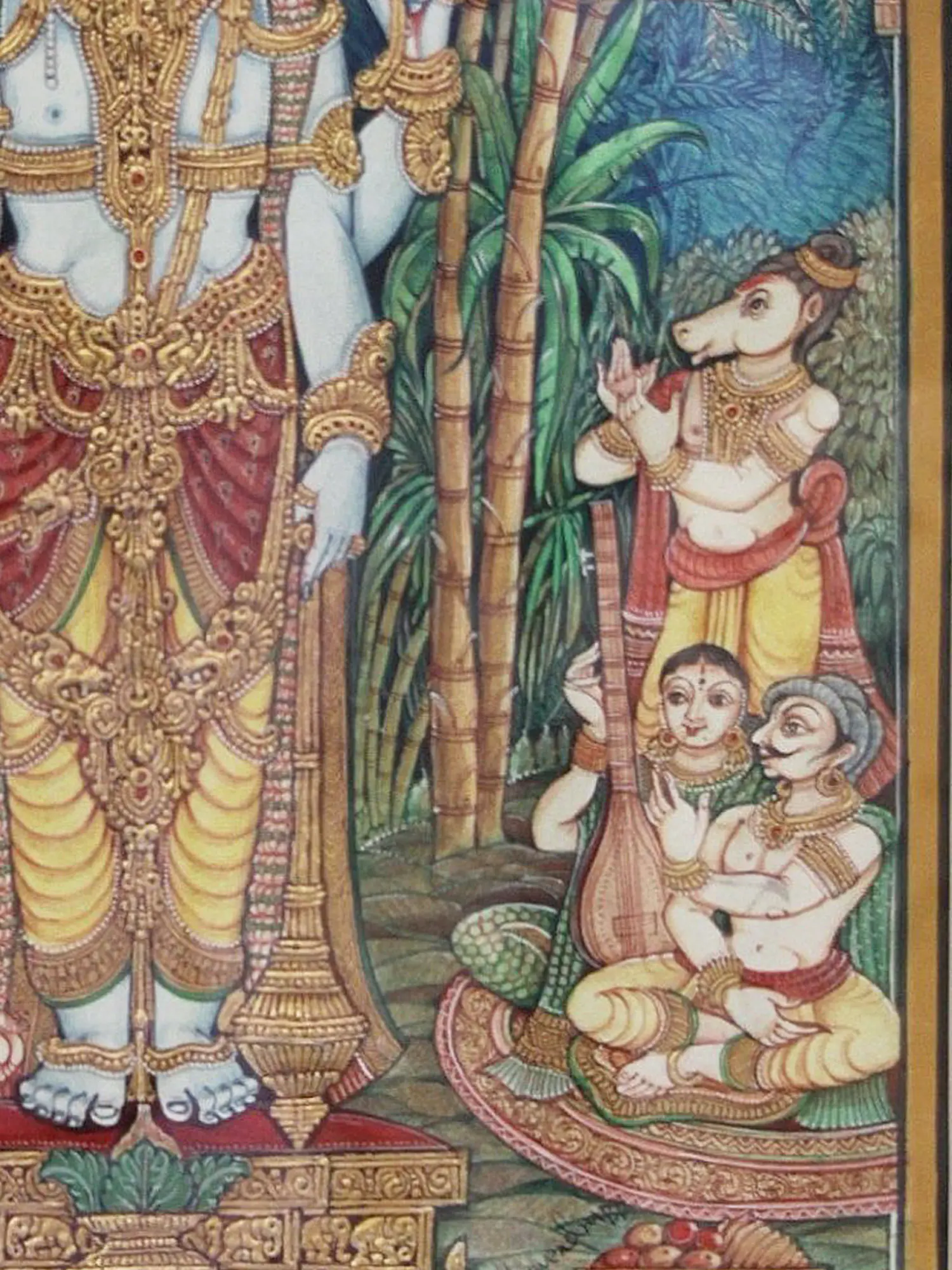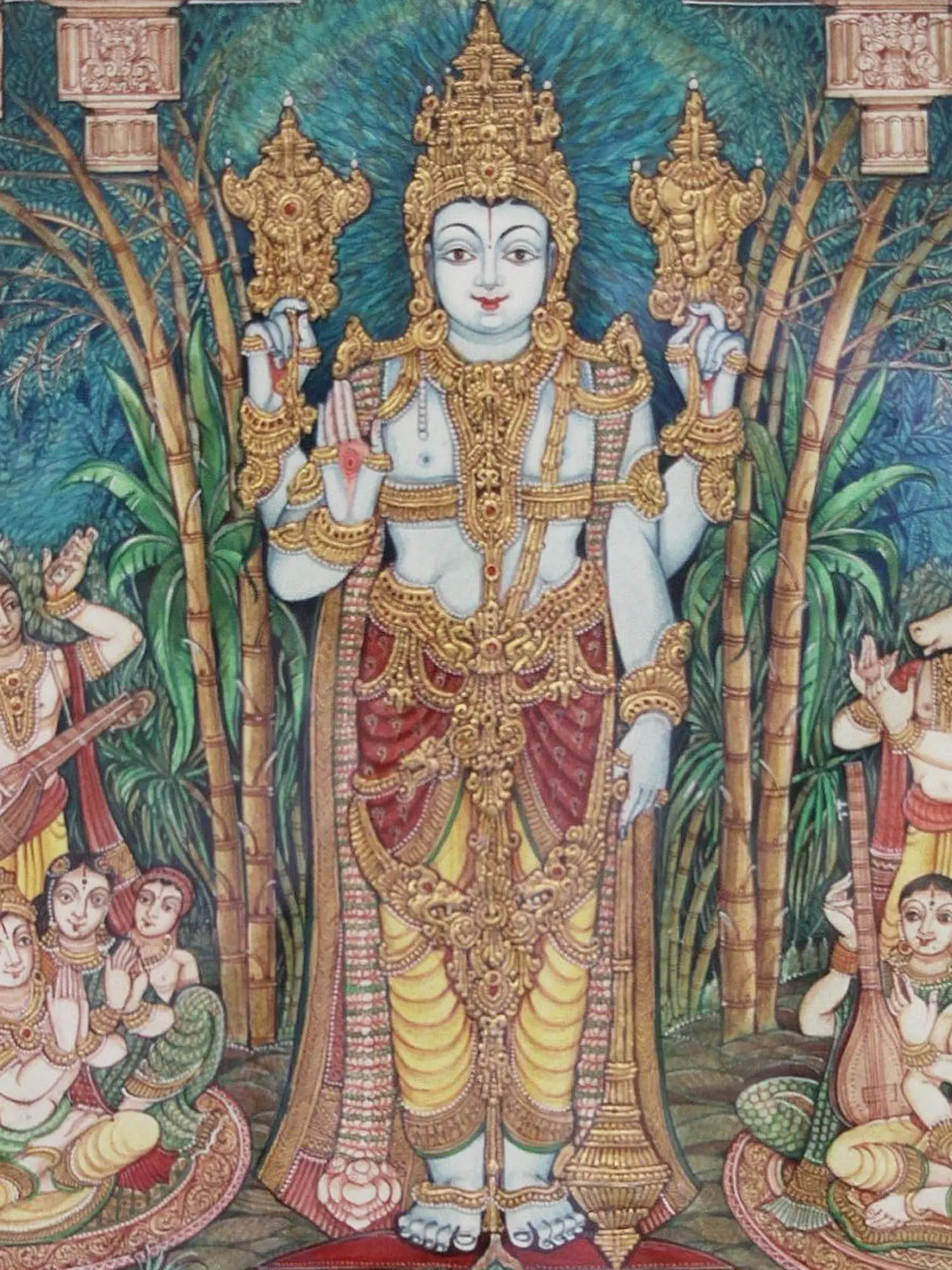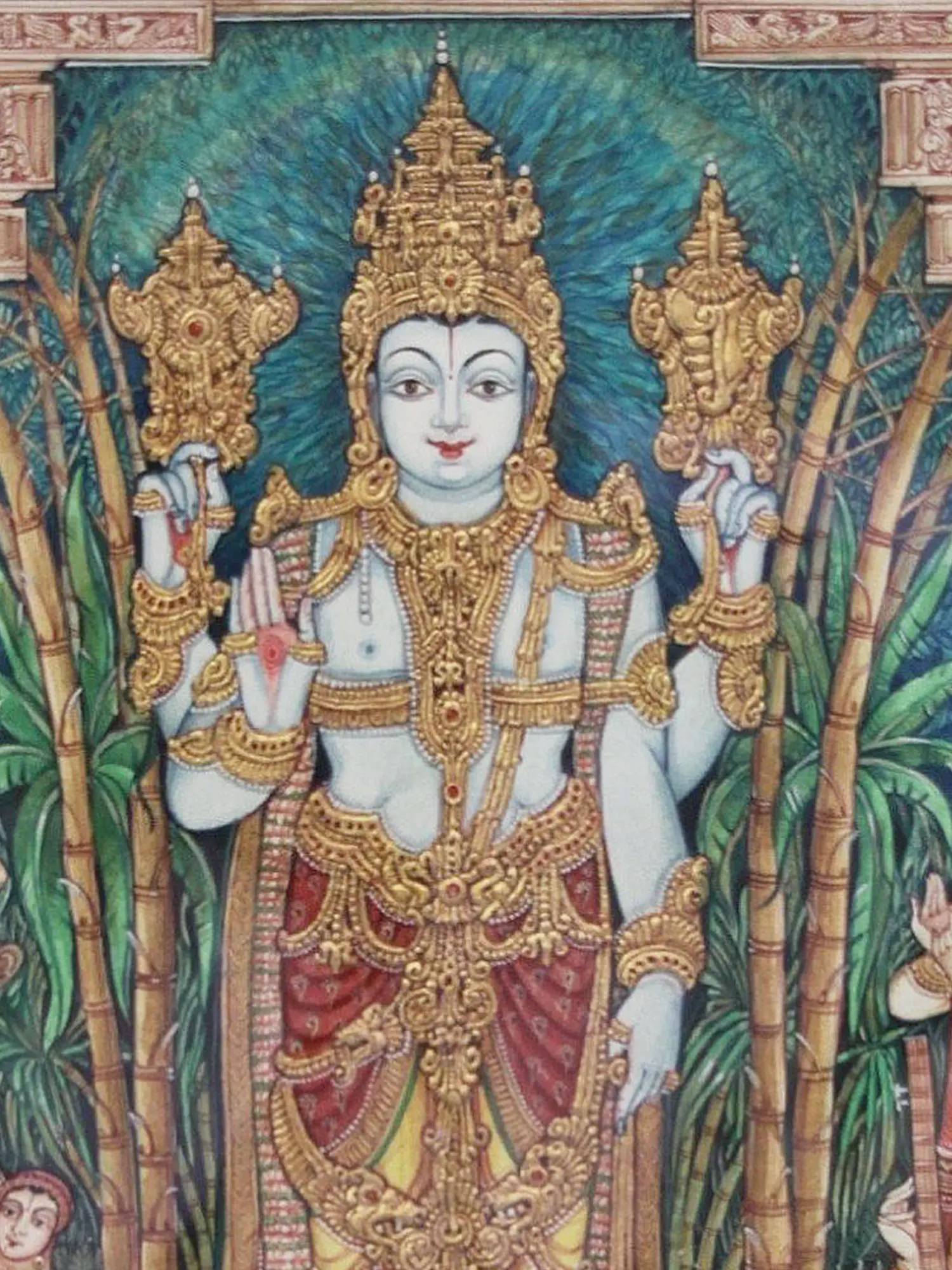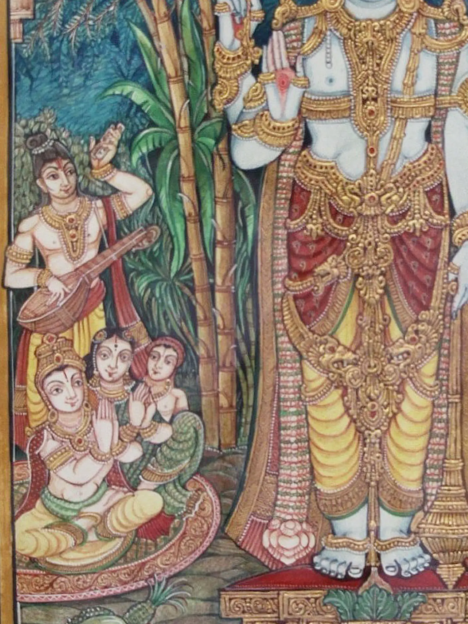 Melkote Cheluvanarayana Swamy (Lord Vishnu on Garuda with Rukmini and Satyabhama) | Mysore Traditional Painting | With Frame