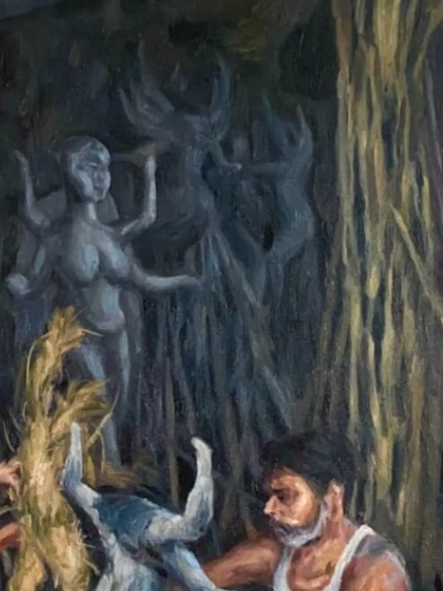 Witness the profound dedication of artists as they bring form and spirit into existence. This commanding oil on canvas captures the intimate, focused energy of creation itself, inviting you to contemplate the very act of bringing the divine to life. It's a powerful visual narrative, rich with emotion and the raw beauty of the artistic process.