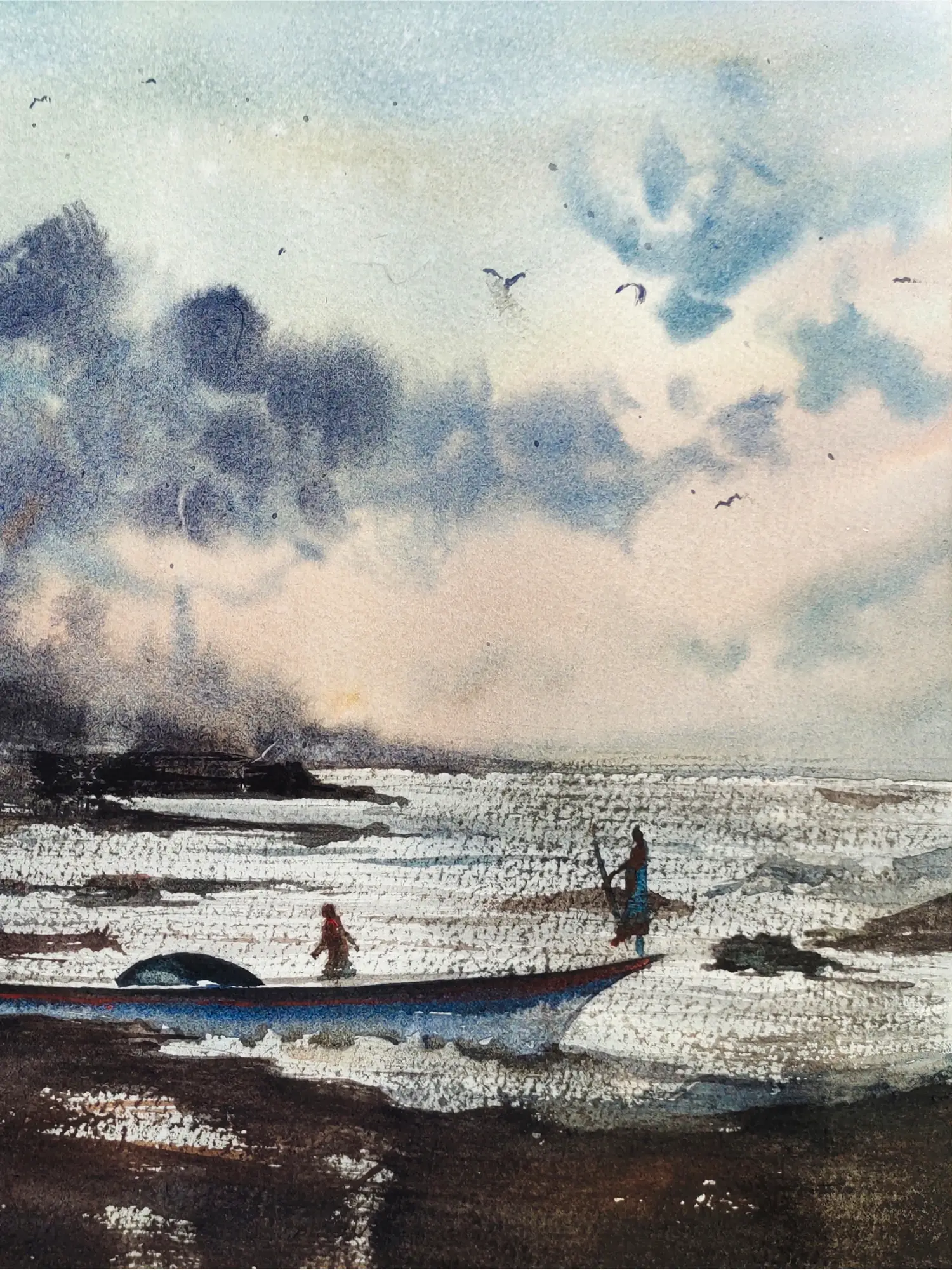 This seascape painting captures the breathtaking beauty and boundless expanse of the sea, where sky and water merge in a symphony of colour and light. The artwork portrays the ever-changing moods and majestic grandeur of the ocean. From rolling waves and distant horizons, the seascape becomes a sanctuary for reflection and contemplation, where the rhythms of nature unfold.Ā