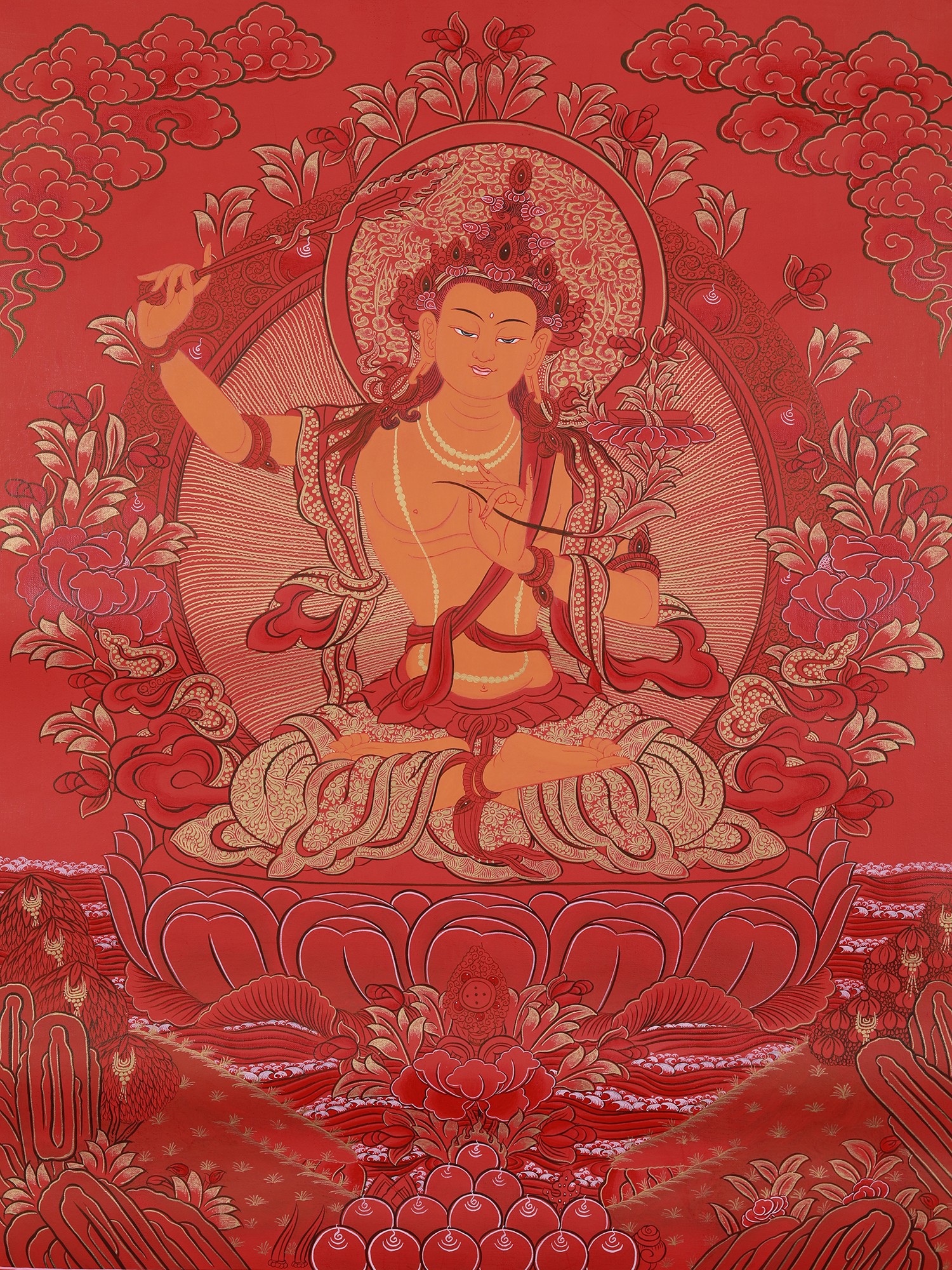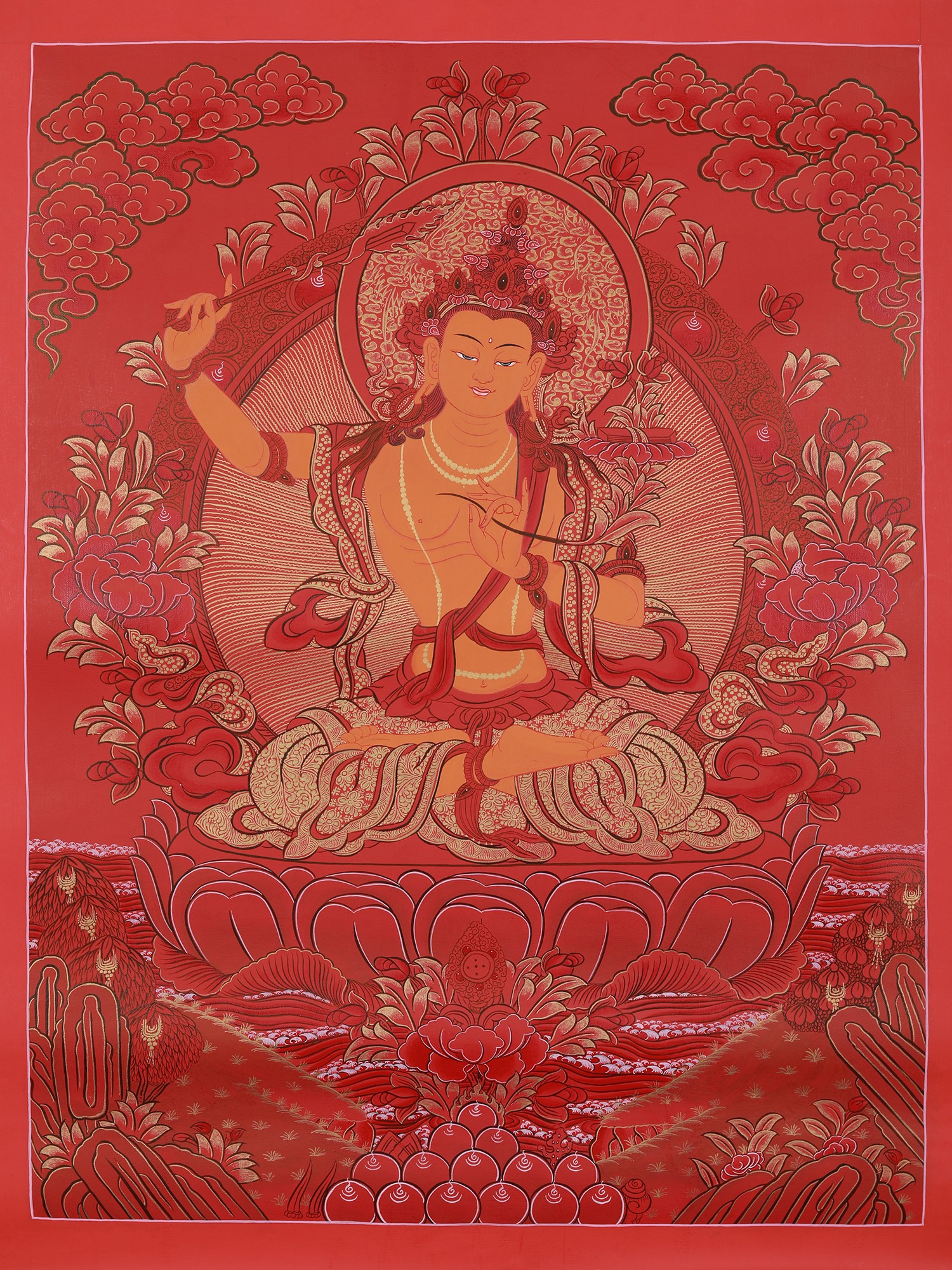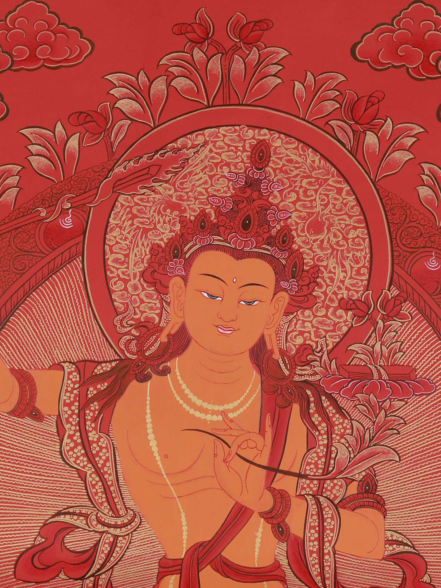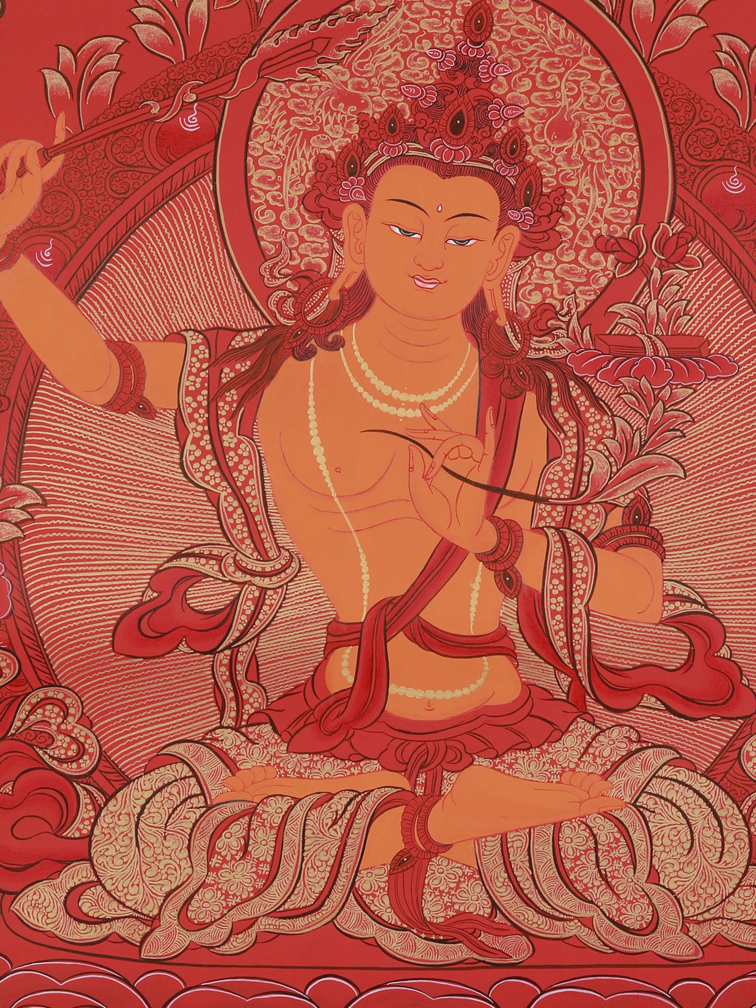 12" Fan Shape Sitting Goddess Lakshmi | Wood and Brass Wall Hanging Frame