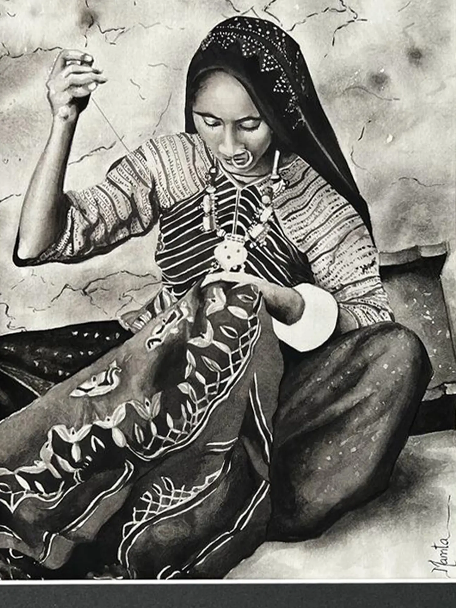 Lord Hanuman Giving Blessings | Acrylic Color With Gold Foil Work | By Arpita Khaskel
