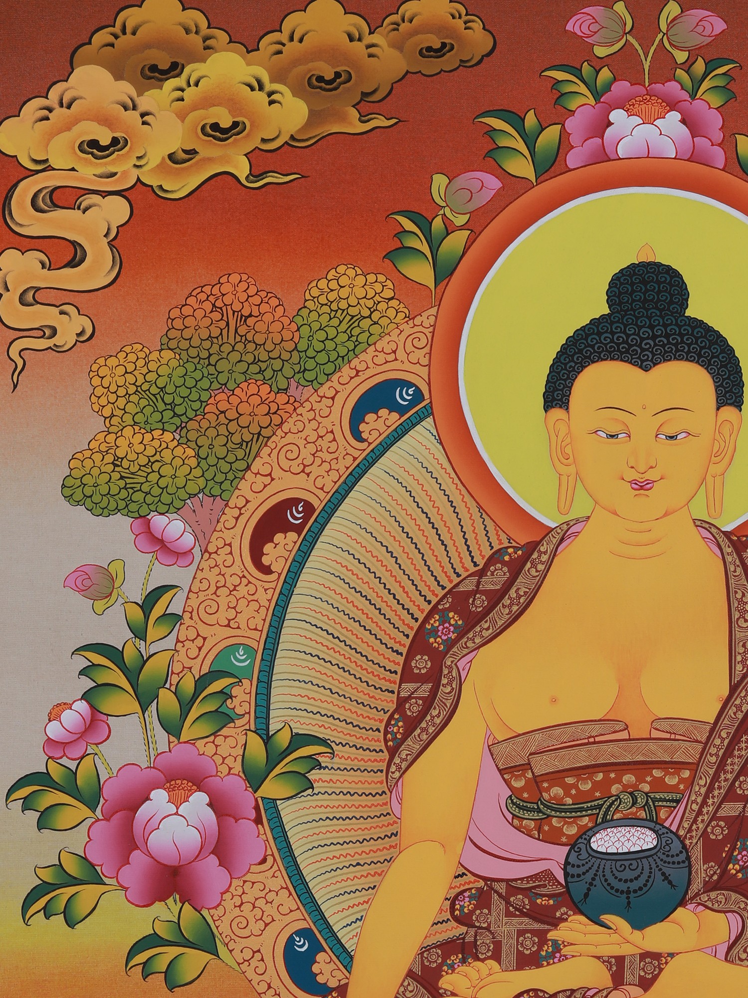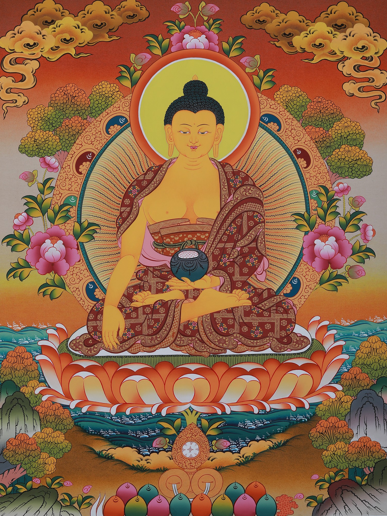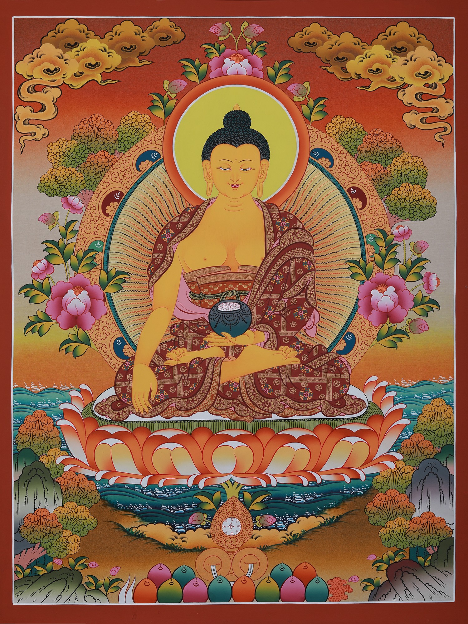 Shakyamuni Buddha Thangka Painting (Brocadeless Thangka)