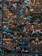 Thangka paintings, originating from the Indian subcontinent and flourishing in Tibet, are sacred art forms traditionally used as tools for meditation and religious instruction. Their creation is a devotional act, with artists following strict iconographic guidelines to ensure accuracy and spiritual efficacy. This painting embodies that tradition, with every brushstroke carrying intention and meaning. The vibrant colors, often derived from natural minerals and pigments, are symbolic: gold representing the Buddha's radiant enlightenment, blue signifying wisdom, and red symbolizing compassion. The dark background prevalent in many Thangkas, as seen here, evokes the vastness of the cosmos and the infinite potential for awakening. The visual storytelling within this Thangka extends beyond the core life events. You'll find representations of the Buddha's parinirvana, his descent from Tushita heaven, and his miraculous powers. The surrounding figures, from devoted monks and lay followers to mythical creatures and deities, all play their role in the grand narrative, illustrating the impact of the Buddha's teachings across all realms of existence. These scenes encourage the viewer to reflect on their own spiritual journey, the challenges they may face, and the path towards inner peace and wisdom. The meticulous detail also speaks to the cultural importance of preserving and transmitting these sacred stories through visual art, ensuring their relevance for generations to come.