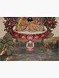 A Thangka is a traditional Tibetan Buddhist painting that usually depicts a Buddhist Deity (Buddha or Bodhisattva), a scene, or a mandala. These paintings are considered important paraphernalia in Buddhist rituals. They are used to teach the life of the Buddha, various lamas, and Bodhisattvas to the monastic students, and are also useful in visualizing the deity while meditating. One of the most important subjects of thangkas is the Bhavacakra (the wheel of life) which depicts the Art of Enlightenment. It is believed that Thangka paintings were developed over the centuries from the murals, of which only a few can be seen in the Ajanta caves in India and the Mogao caves in Gansu Province, Tibet. Thangkas are painted on cotton or silk applique and are usually small in size. The artist of these paintings is highly trained and has a proper understanding of Buddhist philosophy, knowledge, and background to create a realistic and bona fide painting.