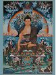 A Thangka is a traditional Tibetan Buddhist painting that usually depicts a Buddhist Deity (Buddha or Bodhisattva), a scene, or a mandala. These paintings are considered important paraphernalia in Buddhist rituals. They are used to teach the life of the Buddha, various lamas, and Bodhisattvas to the monastic students, and are also useful in visualizing the deity while meditating. One of the most important subjects of thangkas is the Bhavacakra (the wheel of life) which depicts the Art of Enlightenment. It is believed that Thangka paintings were developed over the centuries from the murals, of which only a few can be seen in the Ajanta caves in India and the Mogao caves in Gansu Province, Tibet. Thangkas are painted on cotton or silk applique and are usually small in size. The artist of these paintings is highly trained and has a proper understanding of Buddhist philosophy, knowledge, and background to create a realistic and bona fide painting.