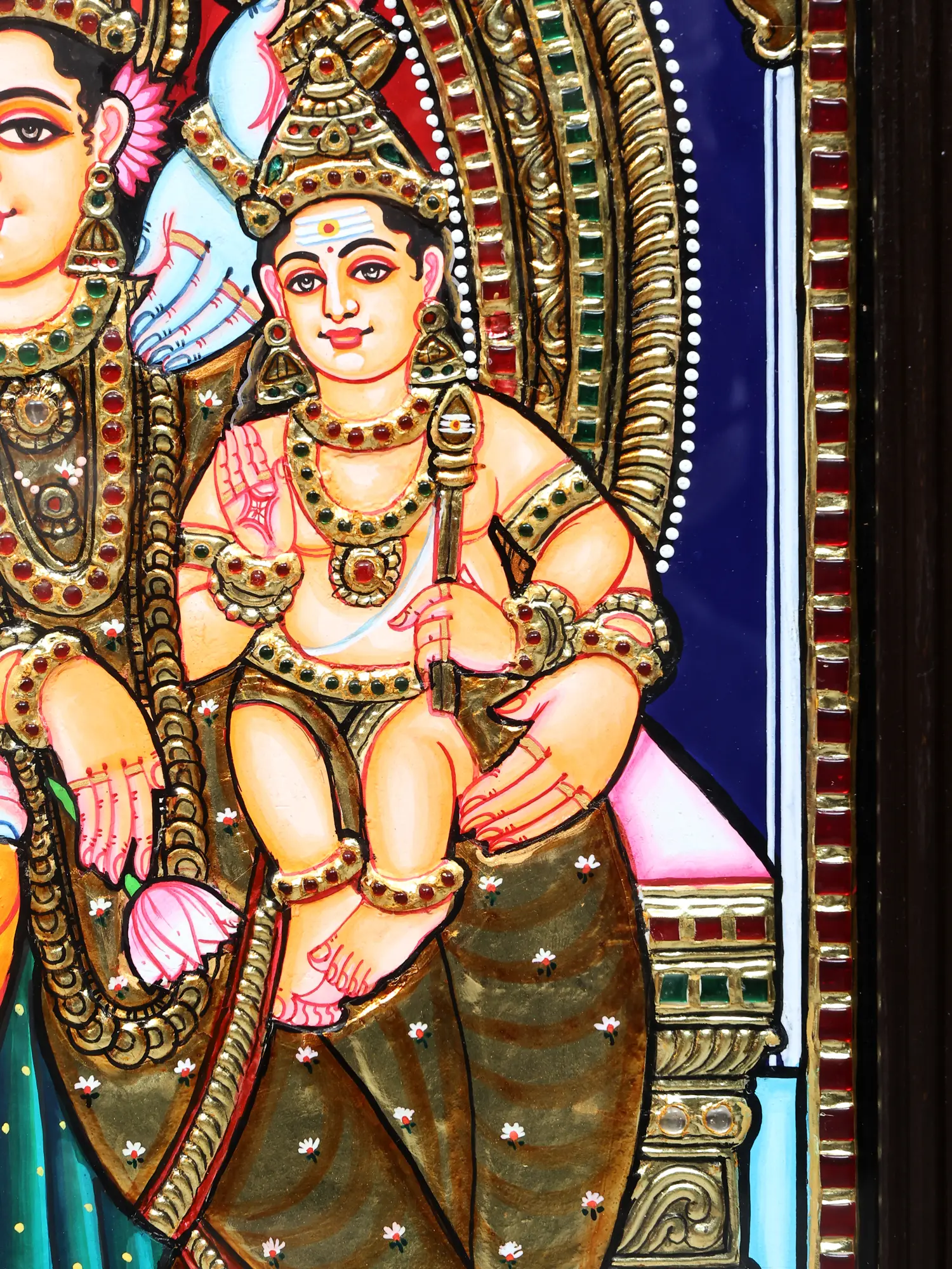 18" Shiva Family Framed Tanjore Painting | 24 Karat Gold Work