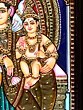 The art of Tanjore painting, originating from the town of Thanjavur in Tamil Nadu, is renowned for its opulent use of gold foil and vibrant colors. This art form, with roots stretching back to the 9th century under the patronage of the Chola dynasty, was further developed during the Nayaka and Maratha periods. Tanjore paintings are characterized by their raised gesso work, intricate inlay of glass beads or semi-precious stones, and the prominent application of 24-karat gold leaf. The artists meticulously create a rich texture and a luminous glow that is unique to this art form. This particular depiction of the Shiva Parivar embodies the very essence of Tanjore art, showcasing the divine figures against a backdrop adorned with traditional motifs and rich embellishments.