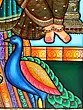 Each element within this painting carries deep symbolic meaning. Lord Shiva, with his third eye and crescent moon, represents destruction and creation, cosmic consciousness. Goddess Parvati, embodying shakti, the divine feminine energy, radiates compassion and nurturing power. Lord Ganesha, the elephant-headed god, is invoked for wisdom and prosperity, his presence ensuring auspicious beginnings. Lord Kartikeya, often depicted as a youthful warrior, symbolizes courage and valor. The presence of Nandi, Shiva's loyal bull, signifies devotion and dharma. The vibrant peacock, a symbol of beauty and immortality, adds to the visual richness and spiritual resonance of the composition. This depiction is not merely an artwork; it is a sacred visual representation of a central Hindu family, fostering devotion and offering blessings to its observers.