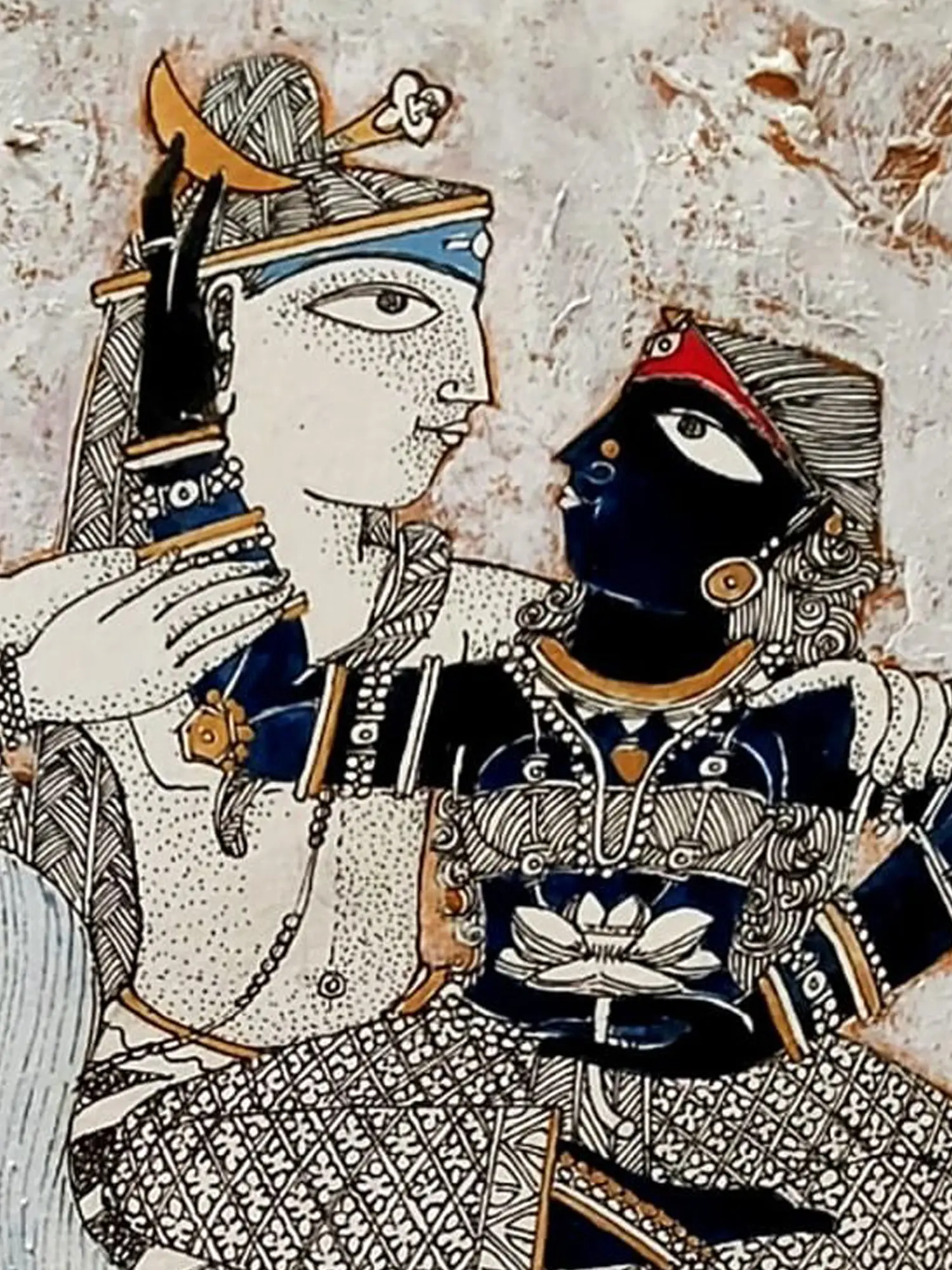 Invite a profound sense of spiritual serenity and artistic mastery into your space. This captivating artwork captures the eternal bond between two beloved deities, rendered with a delicate touch that speaks volumes of devotion and tradition. It’s an exquisite statement piece designed to elevate your home and inspire contemplation.