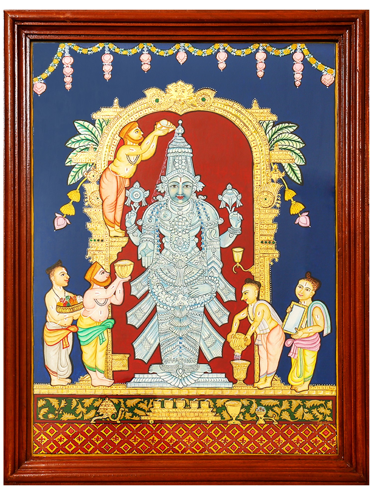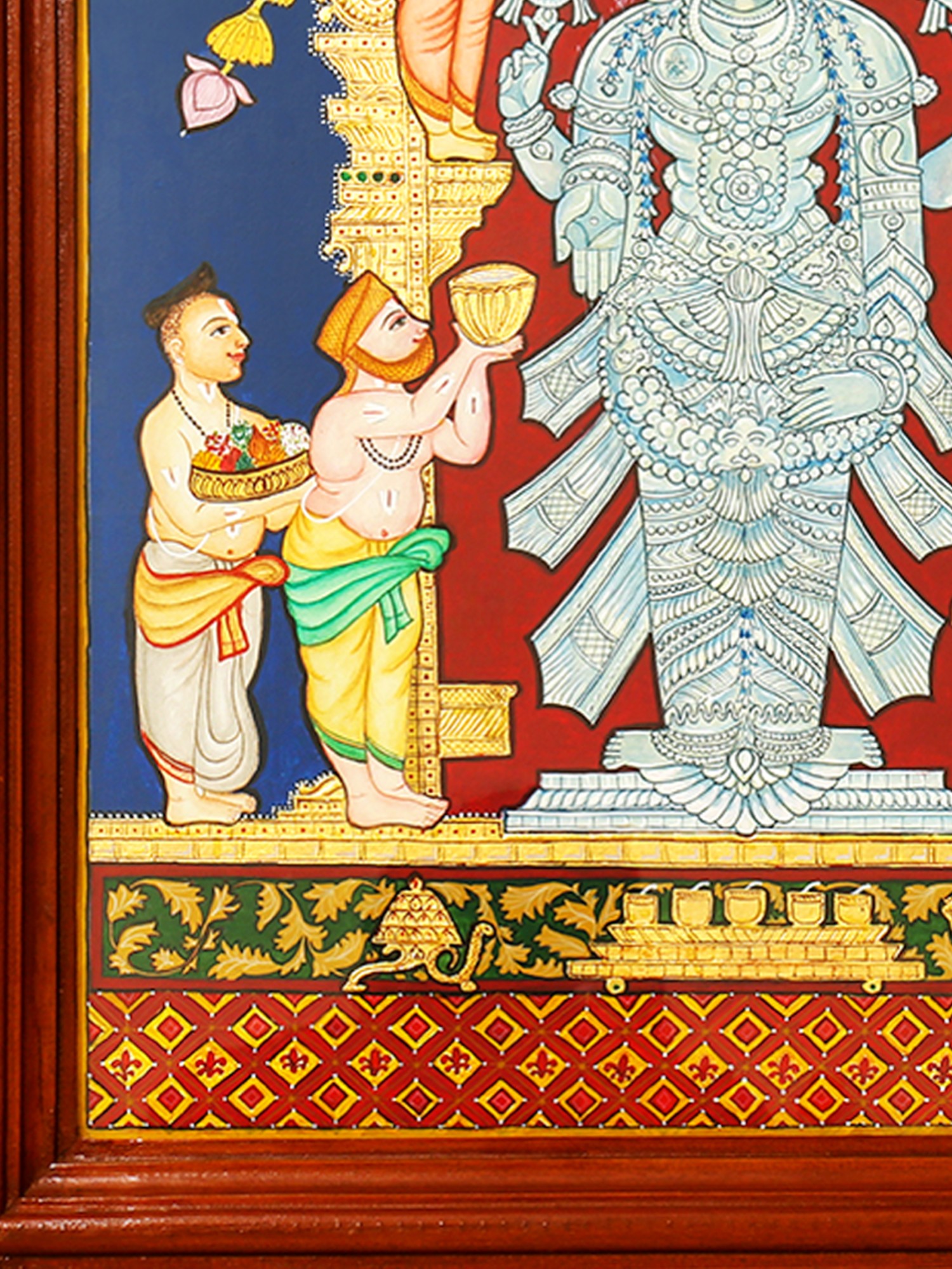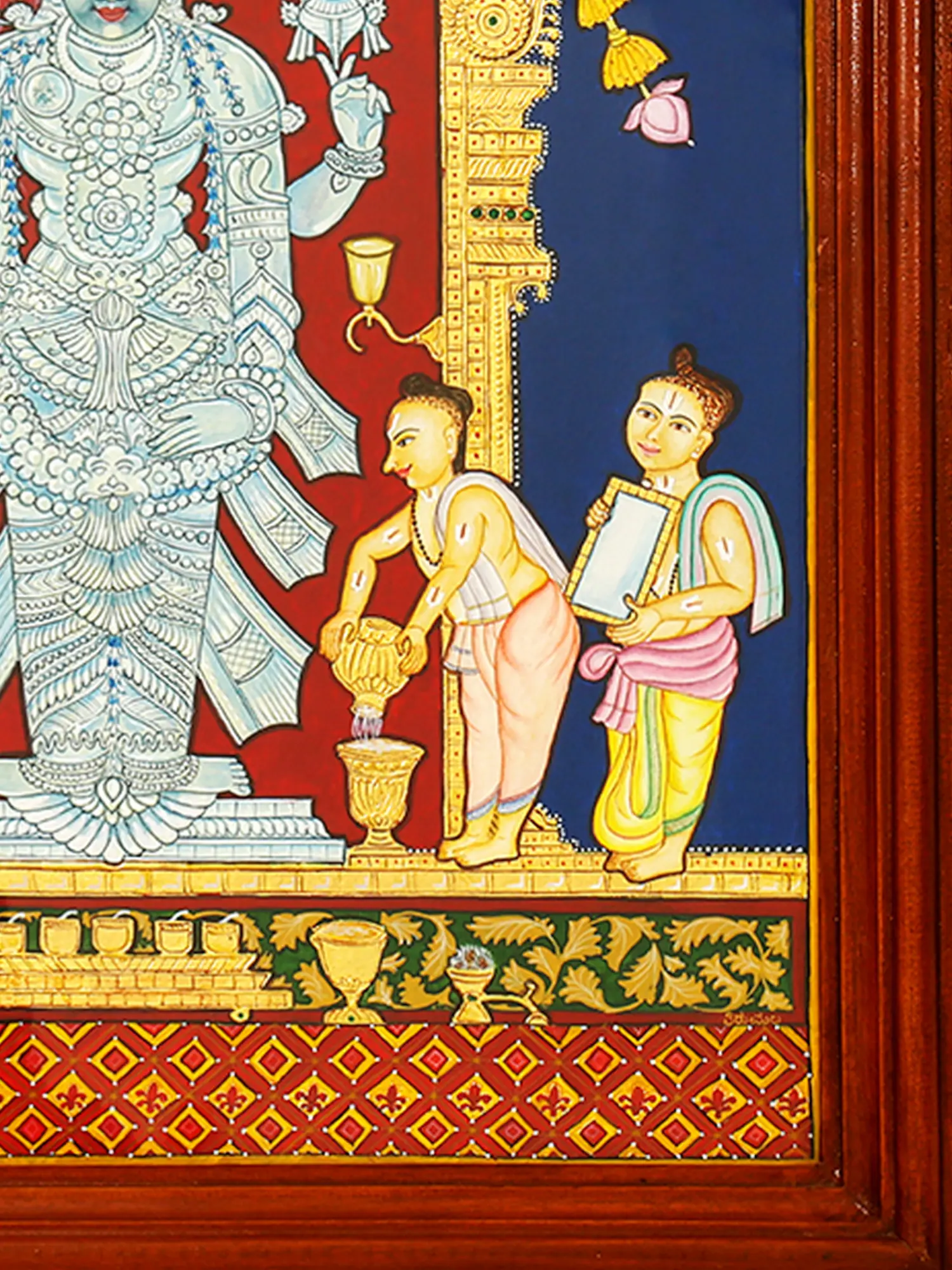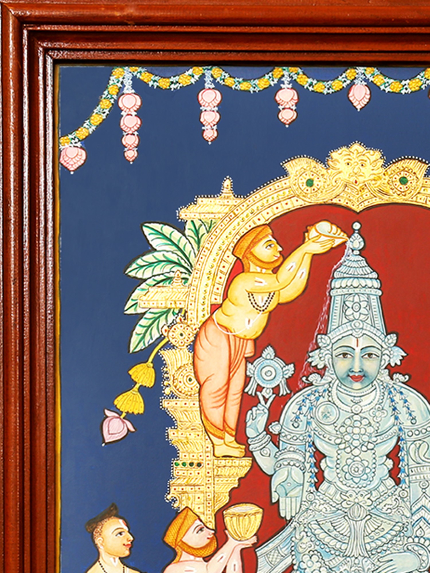 Lakshmi, Kubera, and Bhadra Tanjore Painting | Traditional Colors with 24K Gold | Teakwood Frame