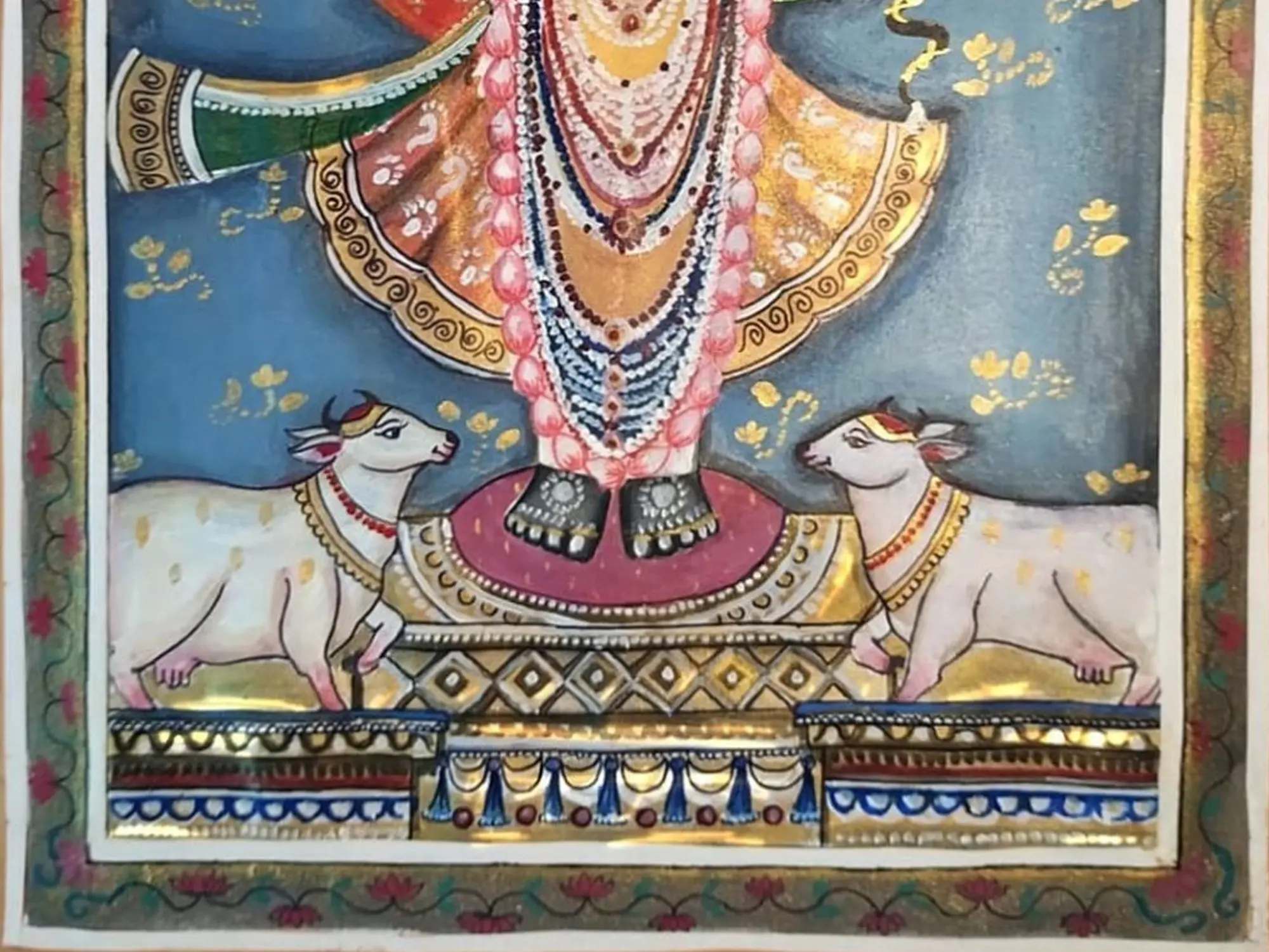 Lord Shrinathji With Devotees And Cows | Natural Color On Cloth | By Dheeraj Munot