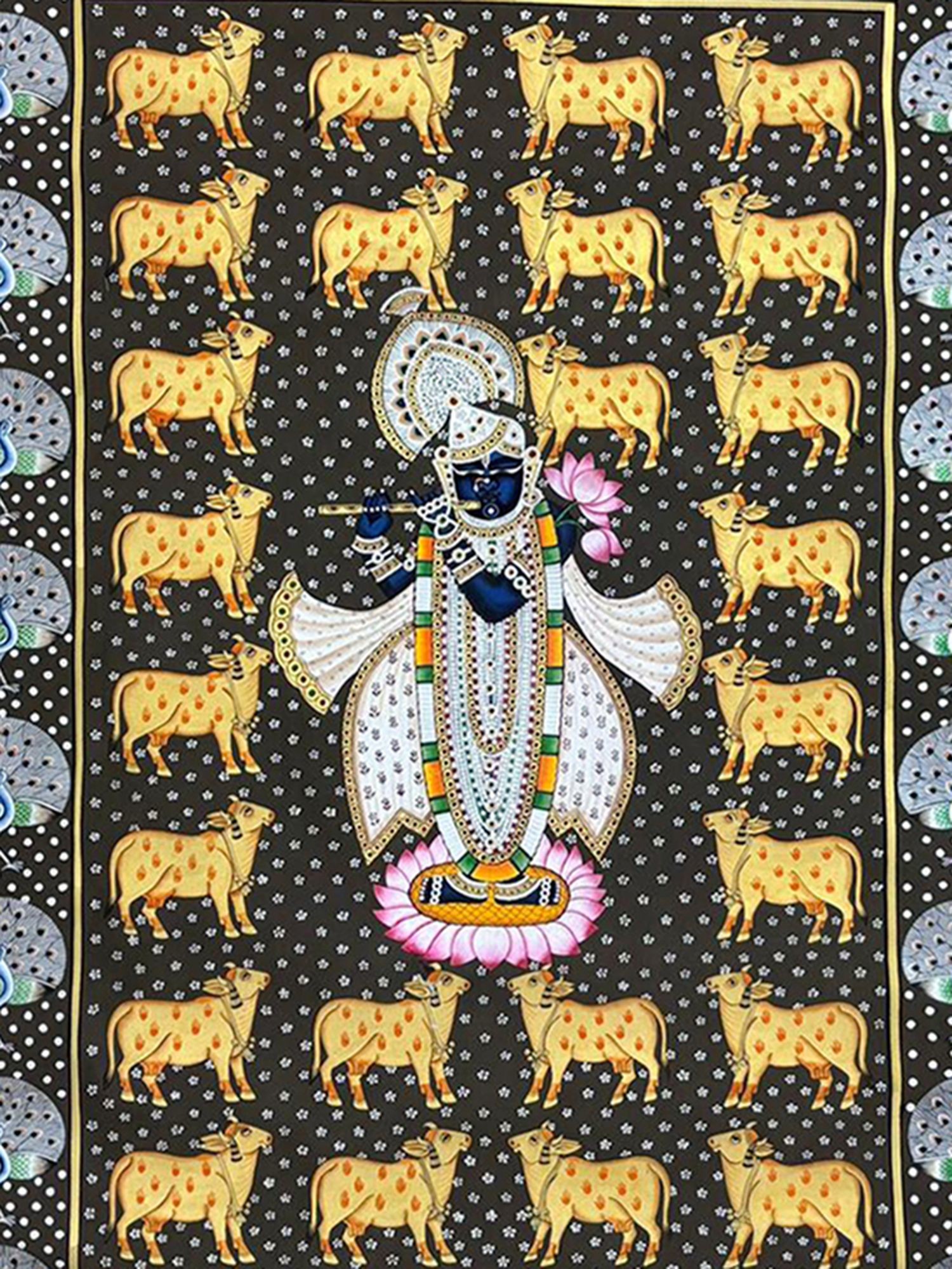 Shrinathji with Cows and Peacocks | Pichwai Painting