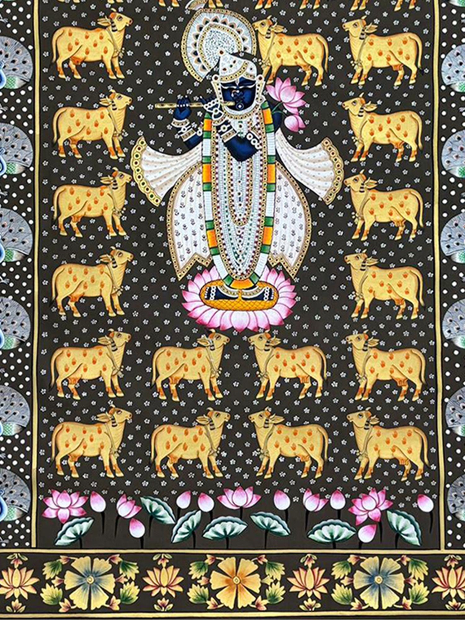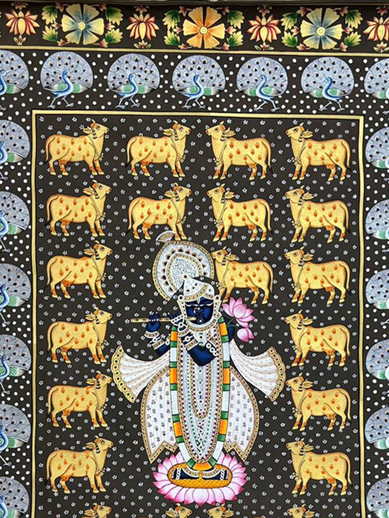 Authentic Pichwai style painting on a cotton canvas.