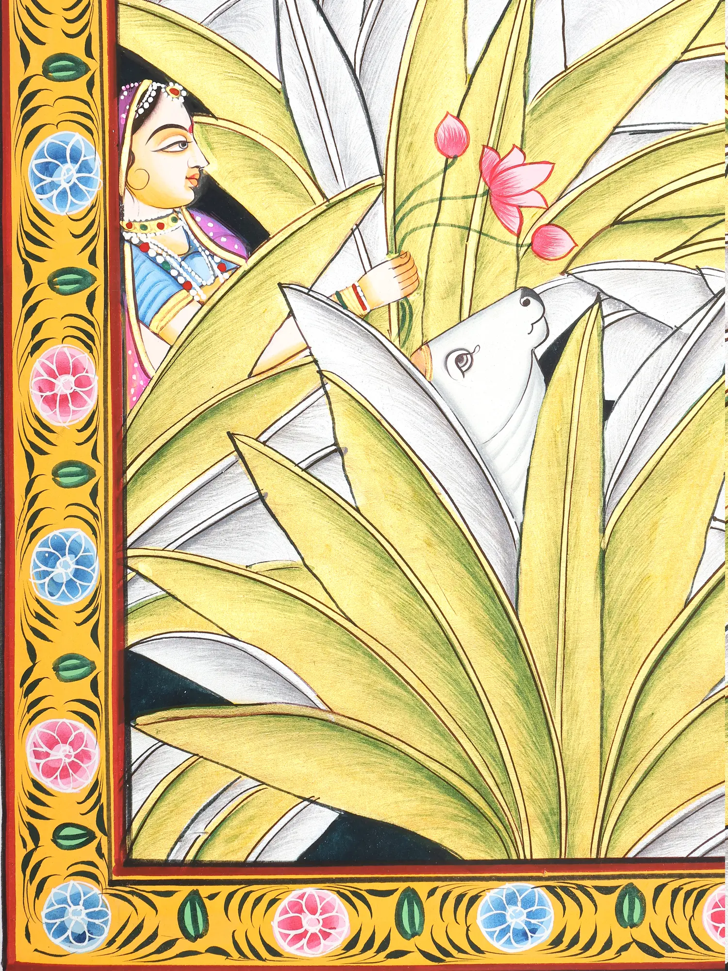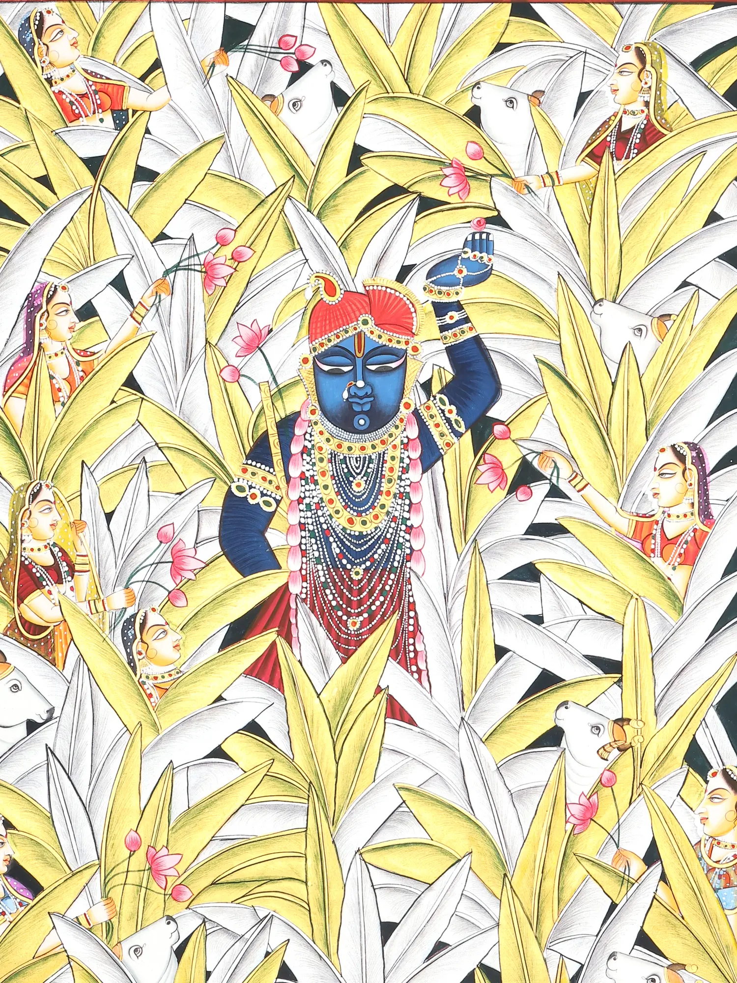 Shrinathji Pichwai Painting Inside The Sacred Cow
