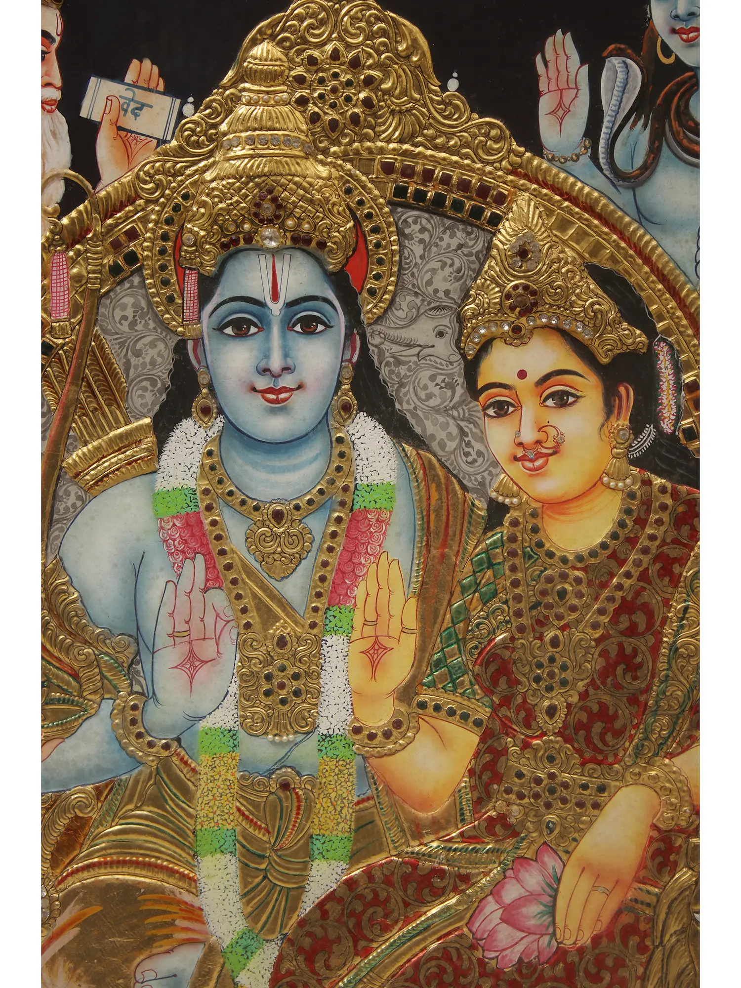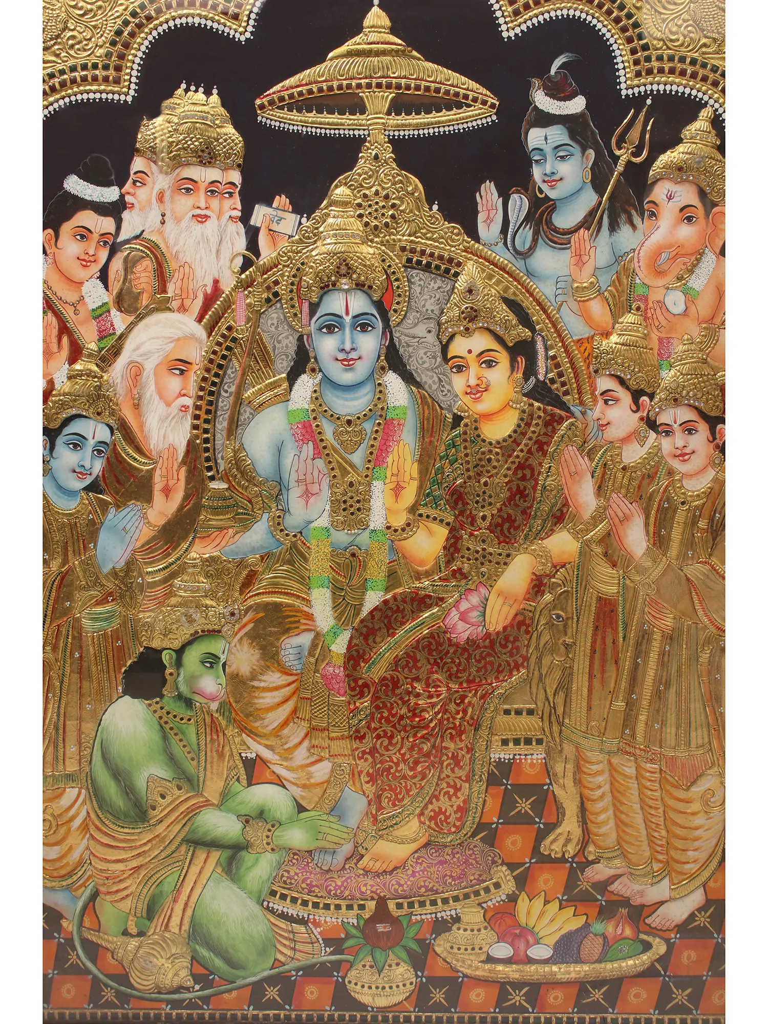 Lord Ganesha Playing Violin | 24 Karat Gold Work | Framed Tanjore Painting