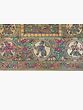 The artist now makes a double-lined border on all four sides of the canvas. The local artists are so expert in painting that they do not draw figures and motifs with pencil but directly draw them with a brush. The paint brushes that the painters use are made of the hair of domestic animals, a bunch of which is tied to the end of a bamboo stick. The figures are now painted with natural colors using the indigenous brushes. The outline is thickened with black color.